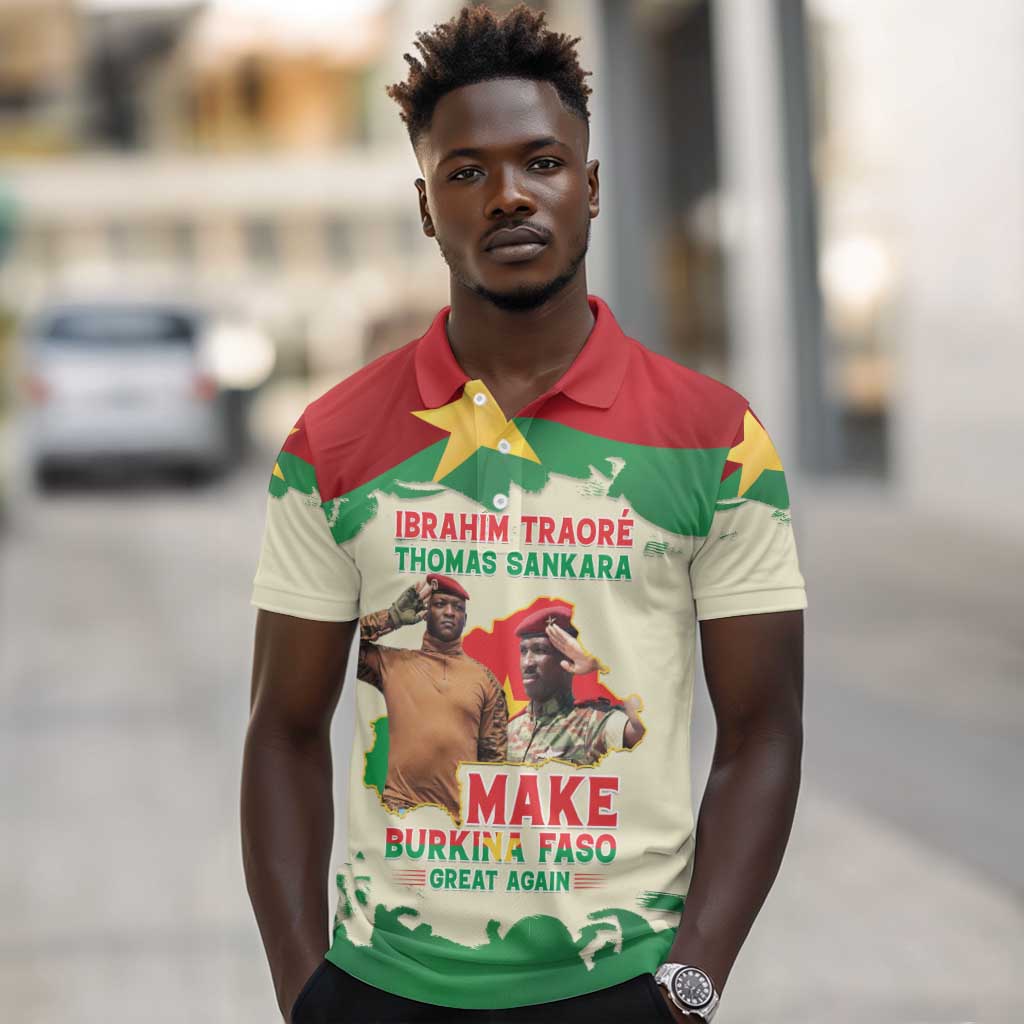 Step into a world where African heritage meets contemporary style with our Ibrahim Traore Thomas Sankara Polo Shirt. This isn't just clothing—it's a powerful statement of pride, unity, and the enduring spirit of Burkina Faso. Designed for those who honor the legacy of great African leaders while embracing modern comfort and sophistication.