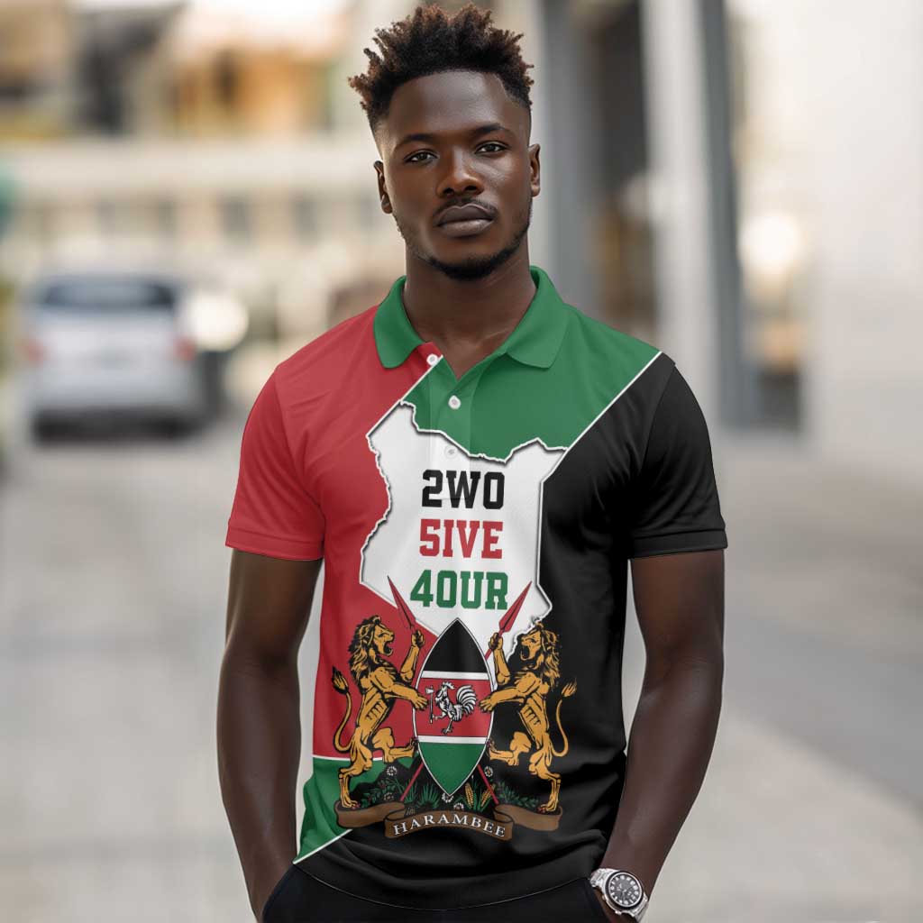Kenya 254 Polo Shirt Kenyan Flag Map Double Lion Shield