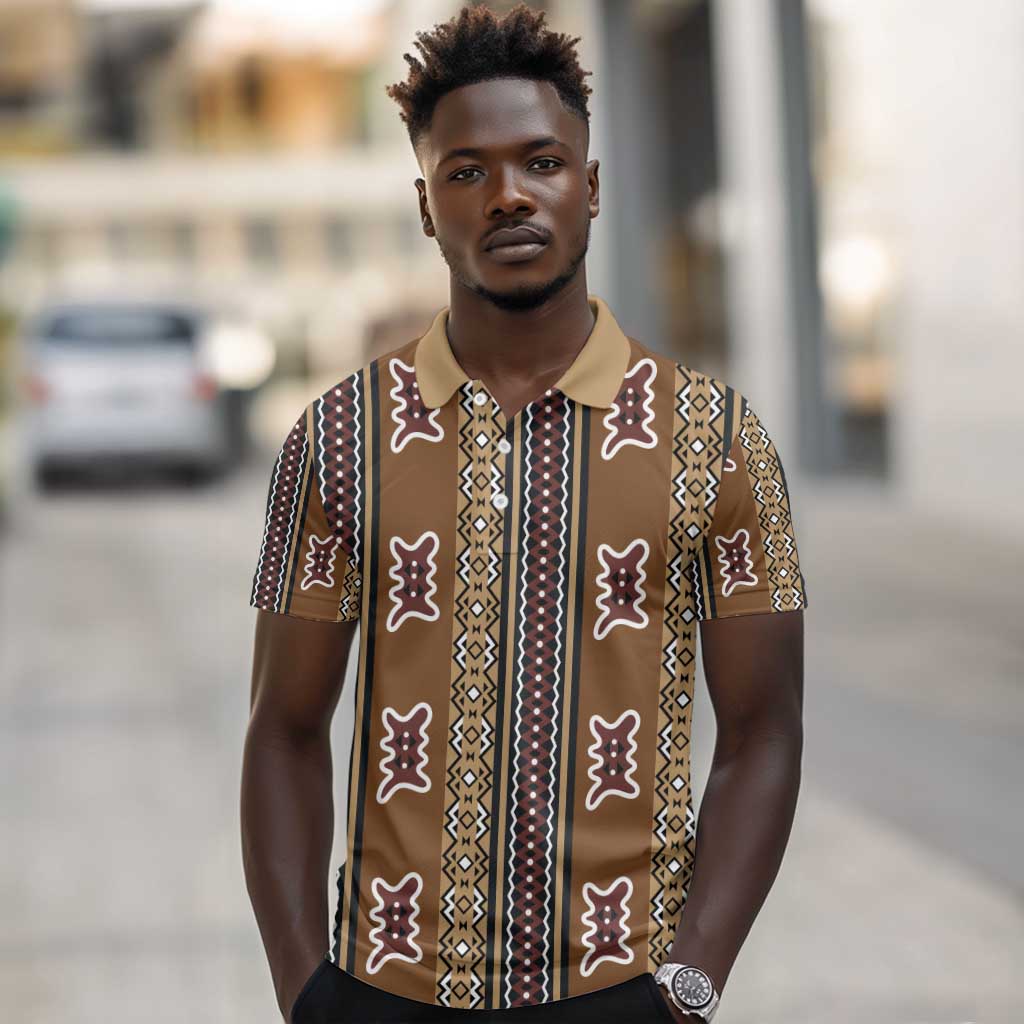 Mali Mud Cloth Polo Shirt Traditional Bologan Pattern