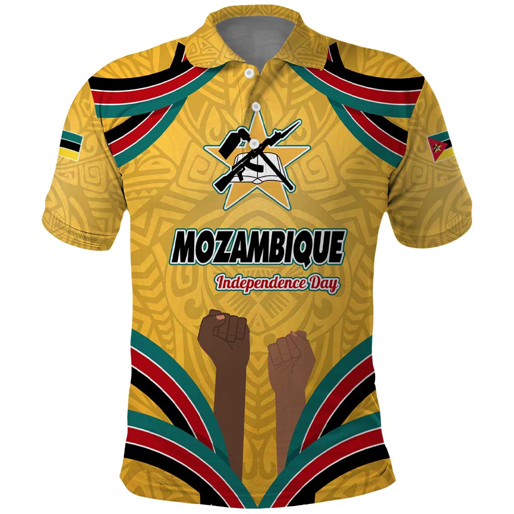 Mozambique Polo Shirt Red Yellow Green Wave Design