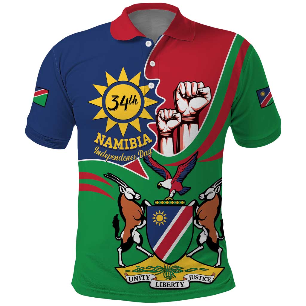 Namibia Gemsbok Polo Shirt Flag Design with African Patterns