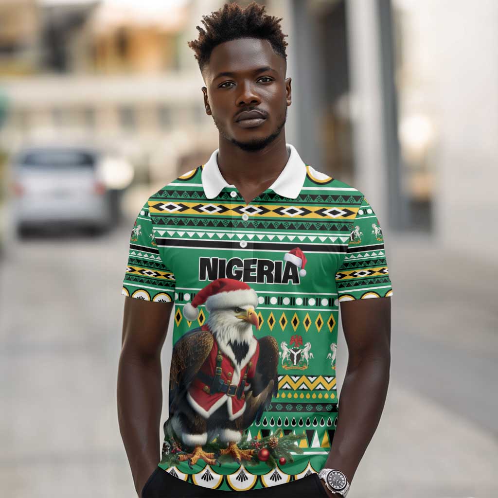 Nigeria Christmas Polo Shirt Eagle Santa - African Pattern