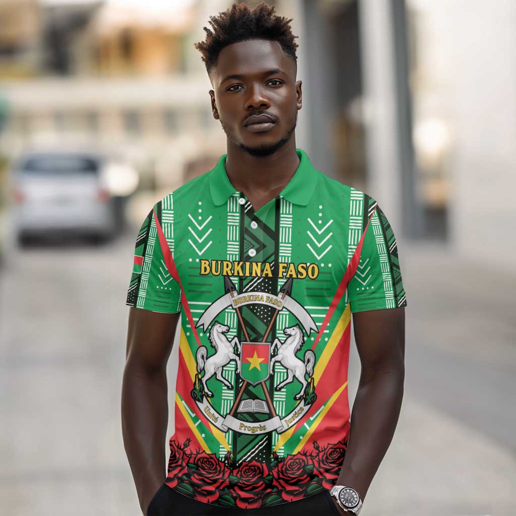 Personalised Afro Burkina Faso Polo Shirt Coat Of Arms With Rose