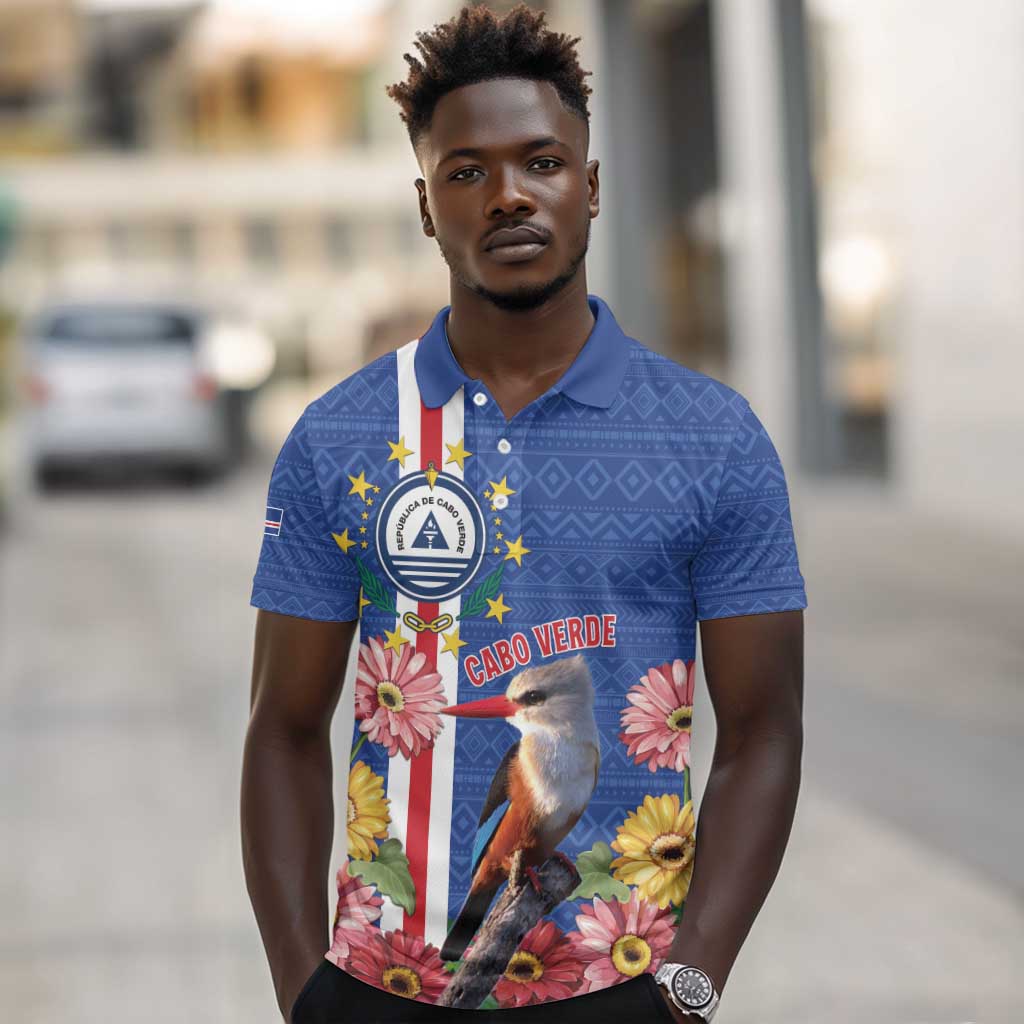 Personalised Cabo Verde Polo Shirt Grey-Headed Kingfisher Mix Gerbera Daisy