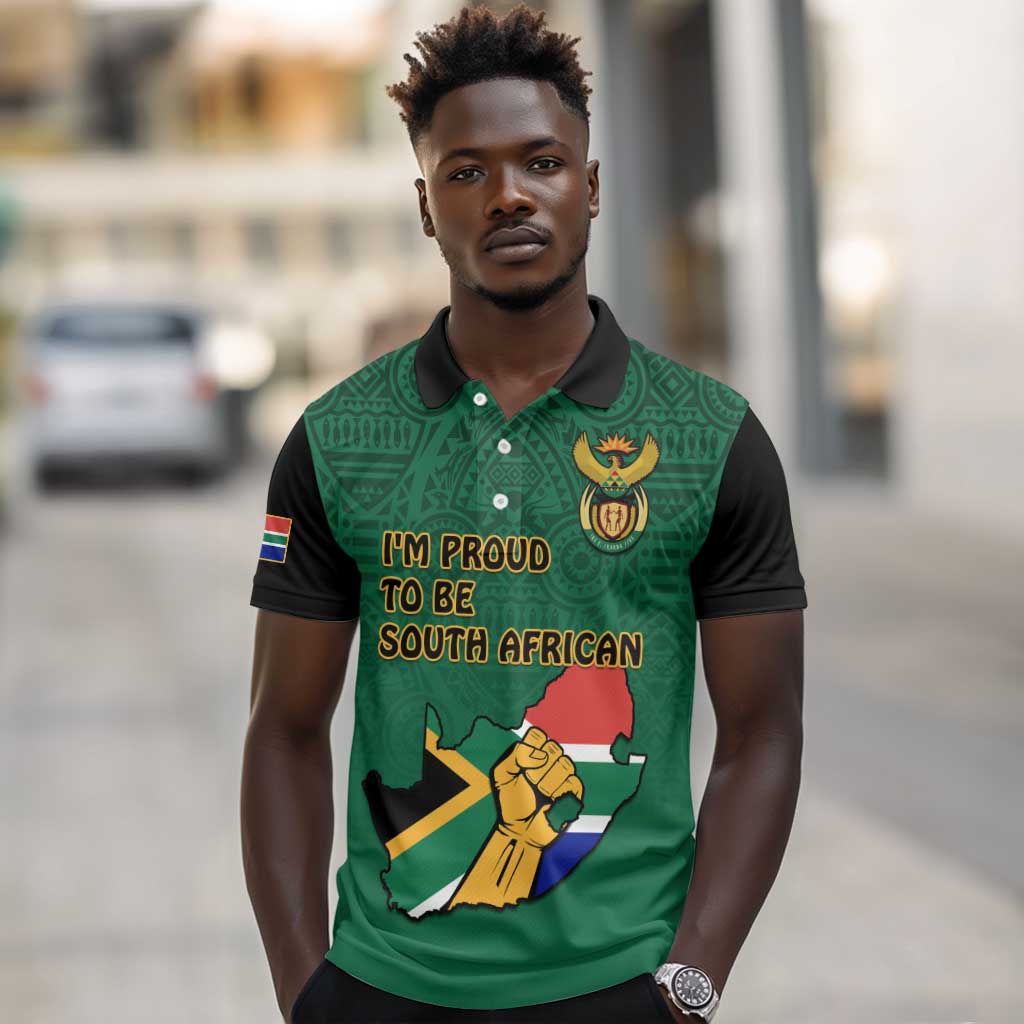 Personalised South Africa Polo Shirt African Pattern Happy Freedom Day Green Version
