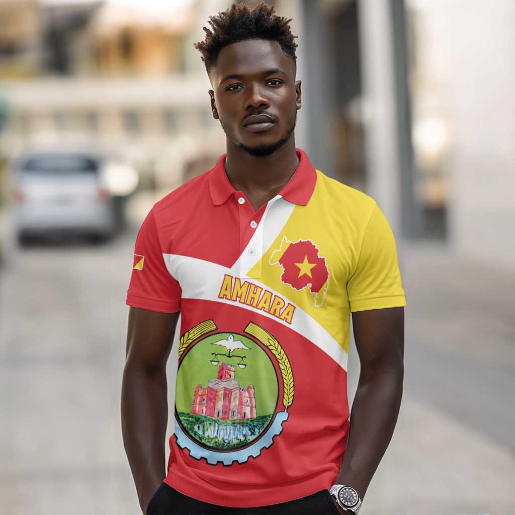 Personalized Amhara Region Polo Shirt Coat Of Arms With Amhara Map