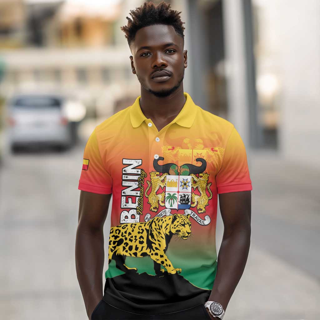 Personalized Benin National Day Polo Shirt Leopard With Coat Of Arms