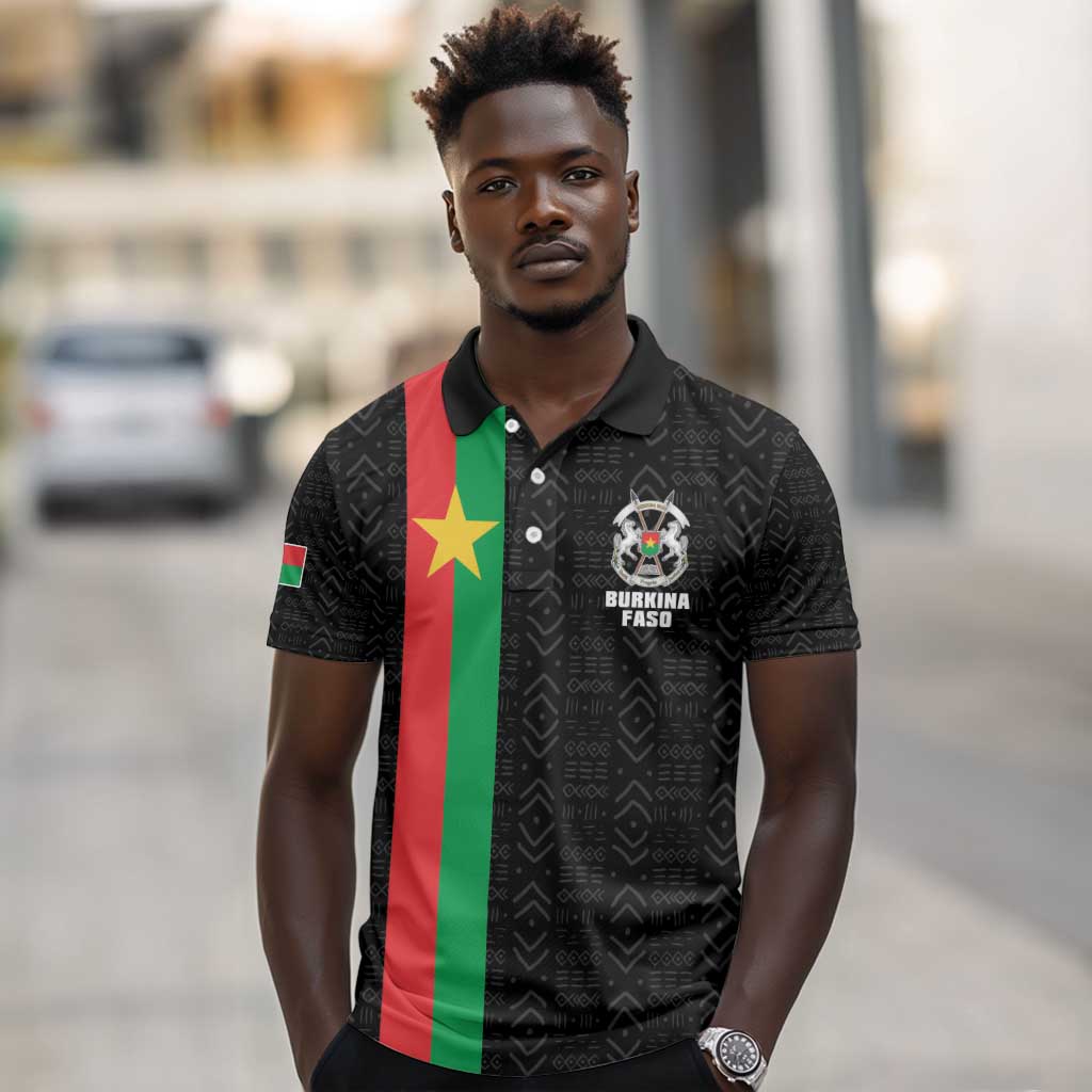 Personalized Burkina Faso Polo Shirt Striped Black - Bogolan Pattern
