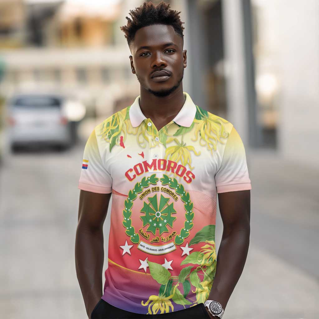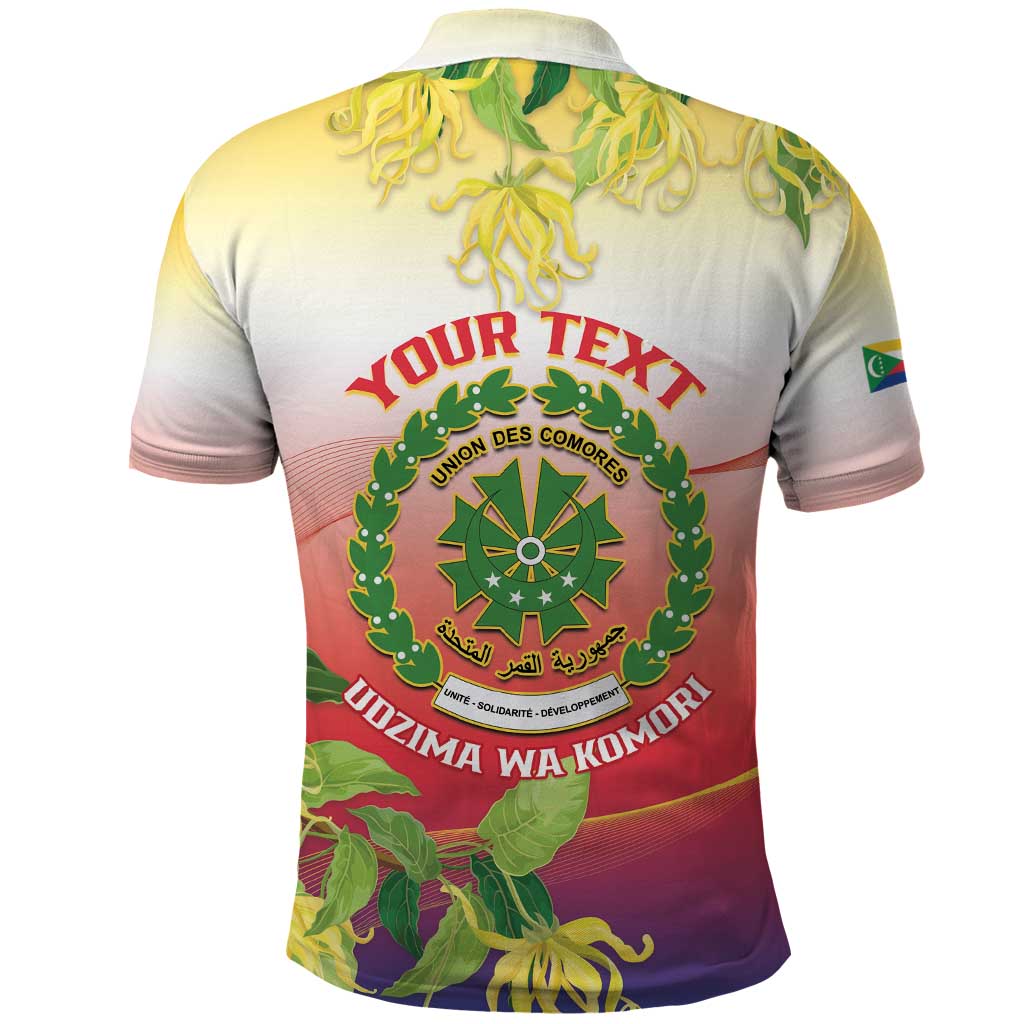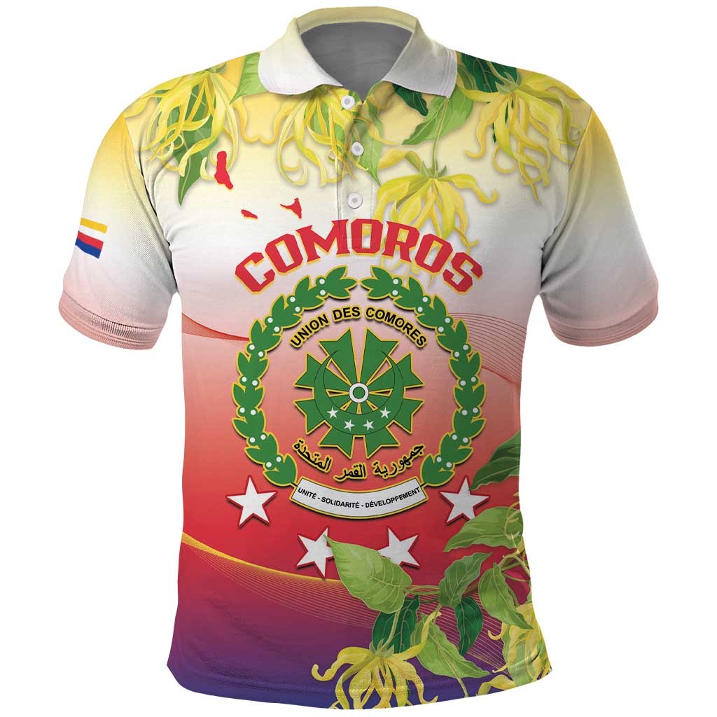 Personalized Comoros Polo Shirt Coat Of Arms Mix Ylang Ylang Flower