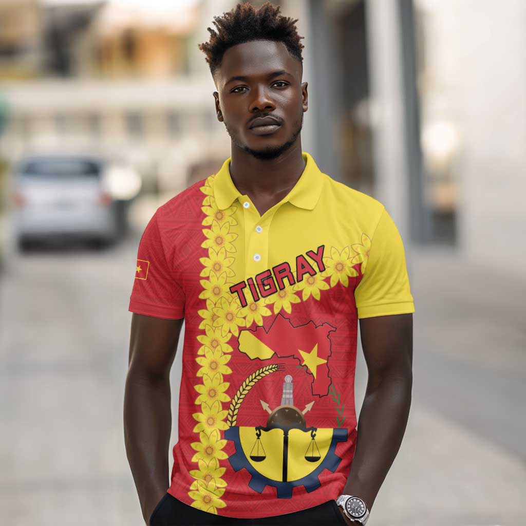 Tigray Ethiopia Polo Shirt Tigray Seal With Flag Map - African Pattern