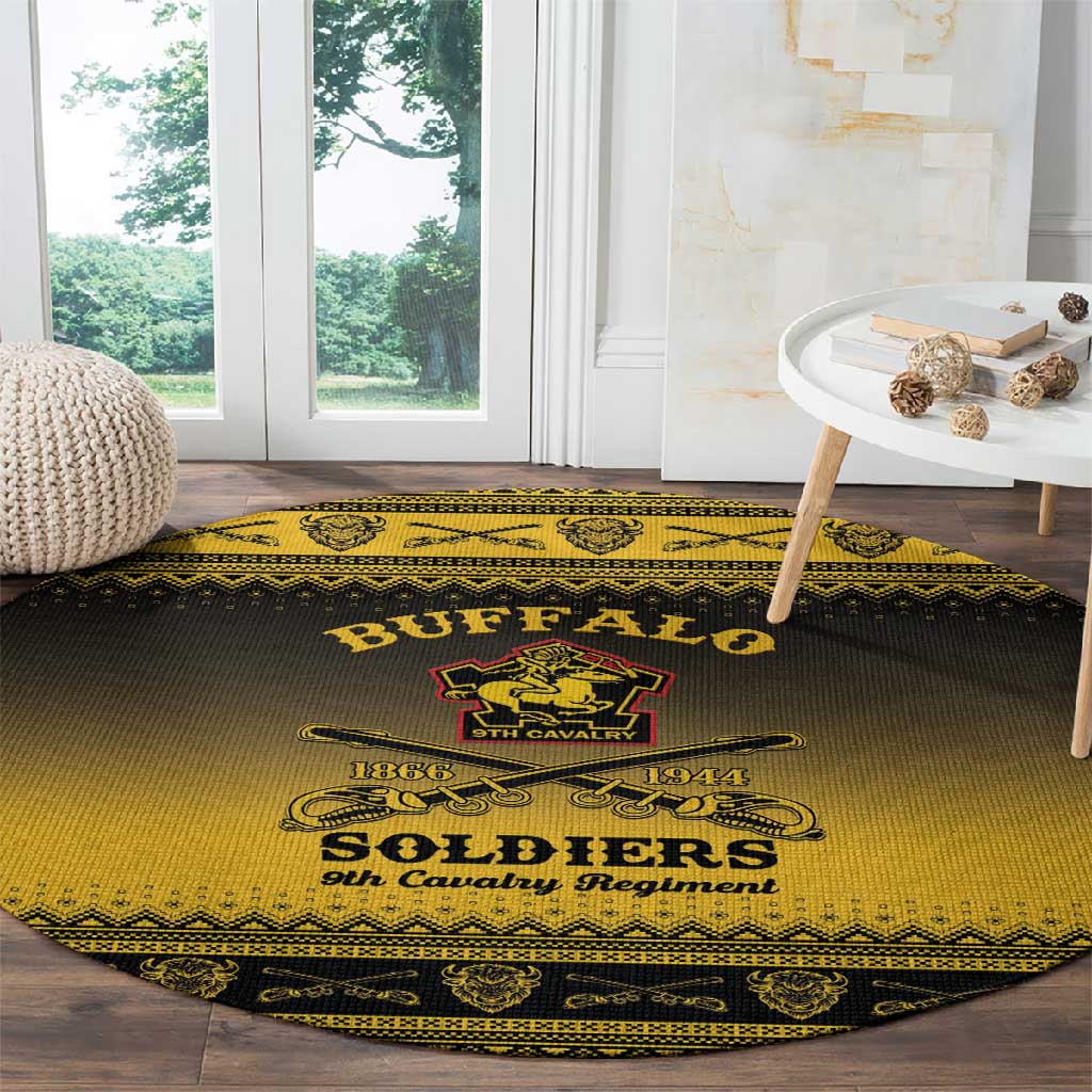 Afro Christmas Buffalo Soldiers Round Carpet 9th Cavalry Regiment