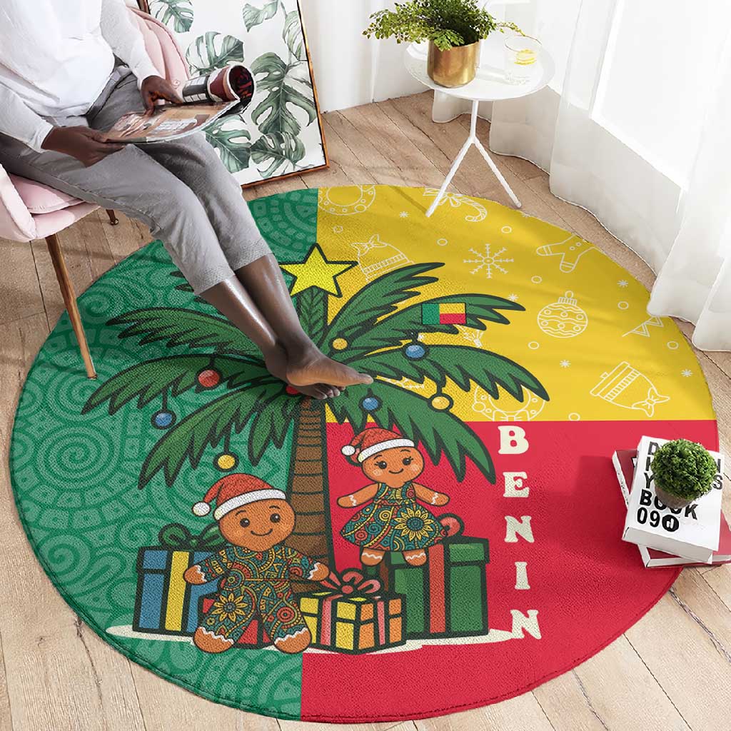 Benin Christmas Round Carpet Palm Tree Dolls and Red Yellow Green Festive