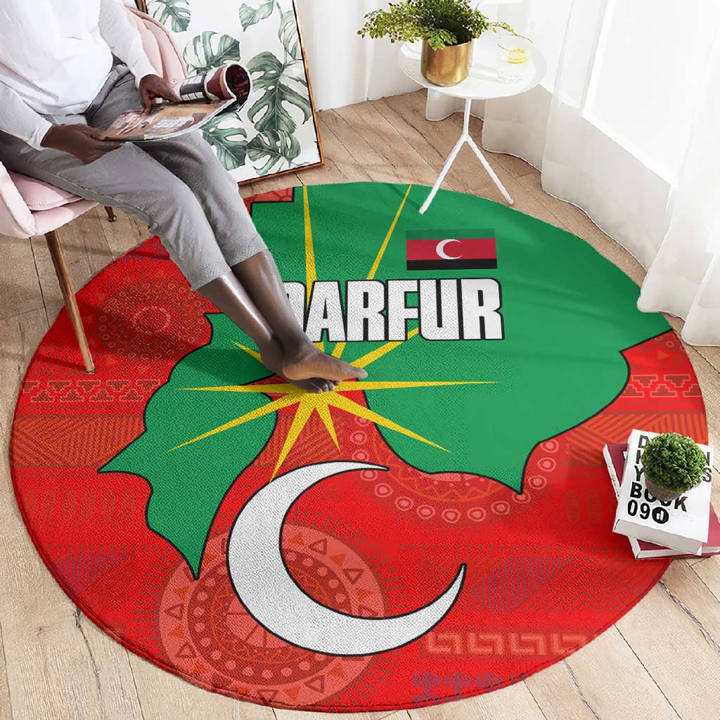 Darfur Sudan Round Carpet Red Green Yellow Crescent Star