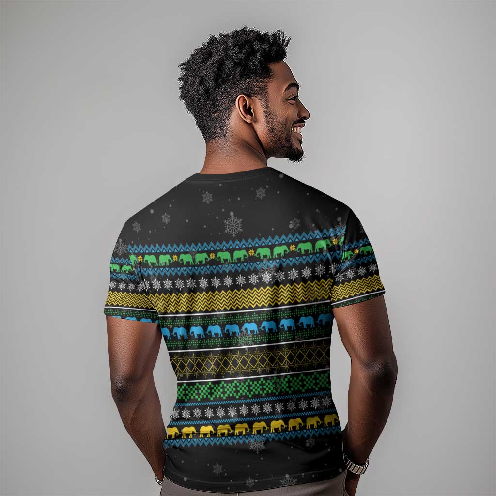 Tanzania Christmas T shirt African Santa Riding Elephant Snowflakes