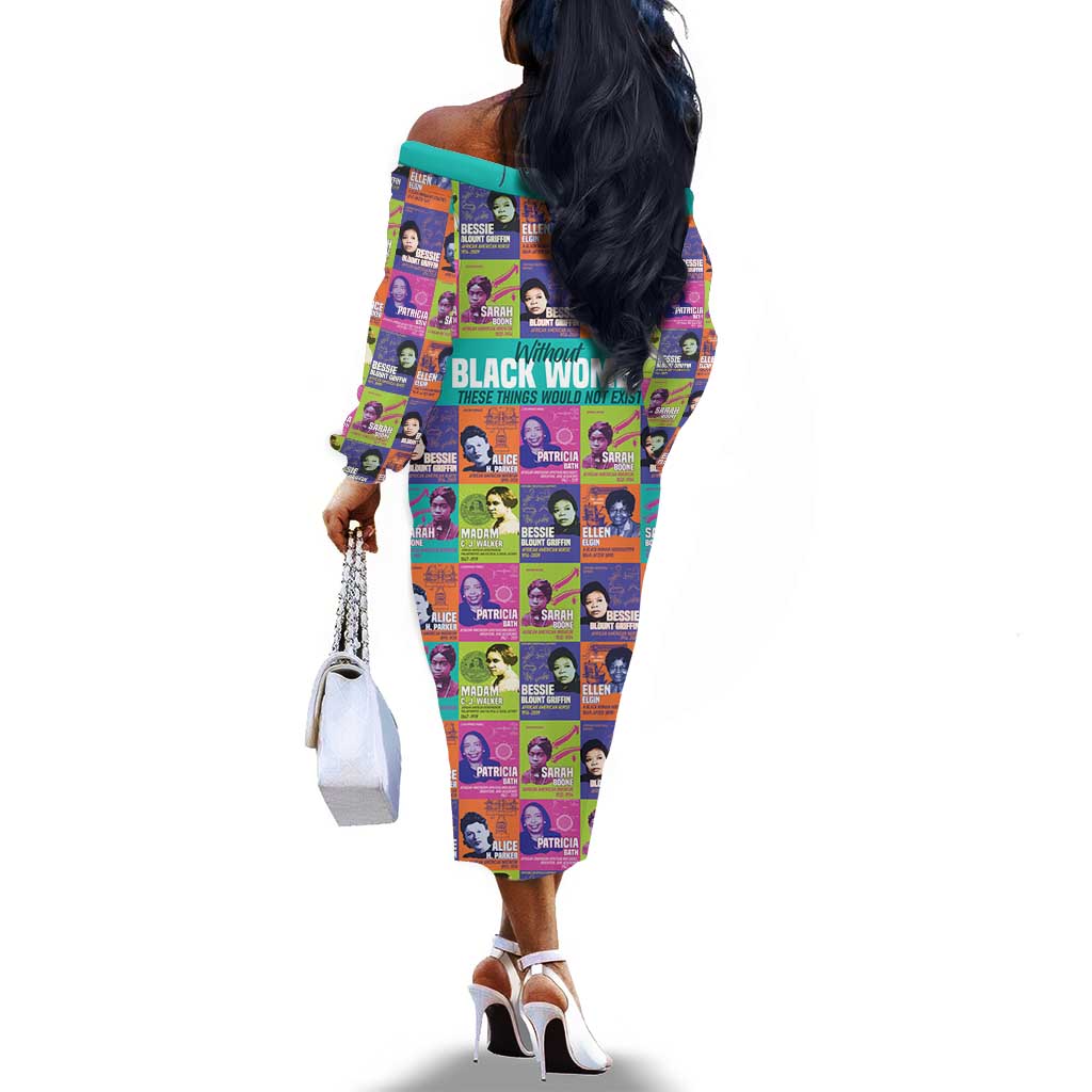 African Women Inventors Off The Shoulder Long Sleeve Dress Without Black Women These Things Would Not Exist DT02