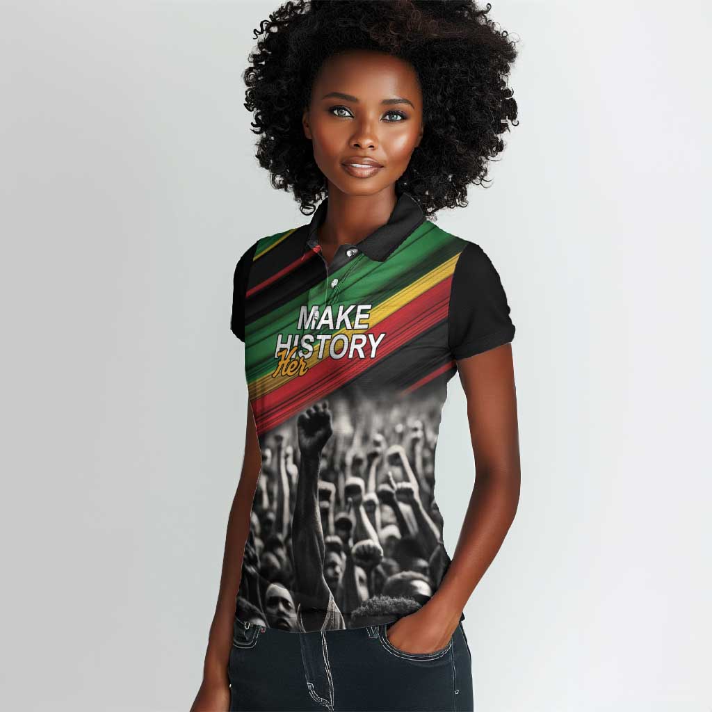 African-American History Month Women Polo Shirt Black Power Hand Make His-Herstories