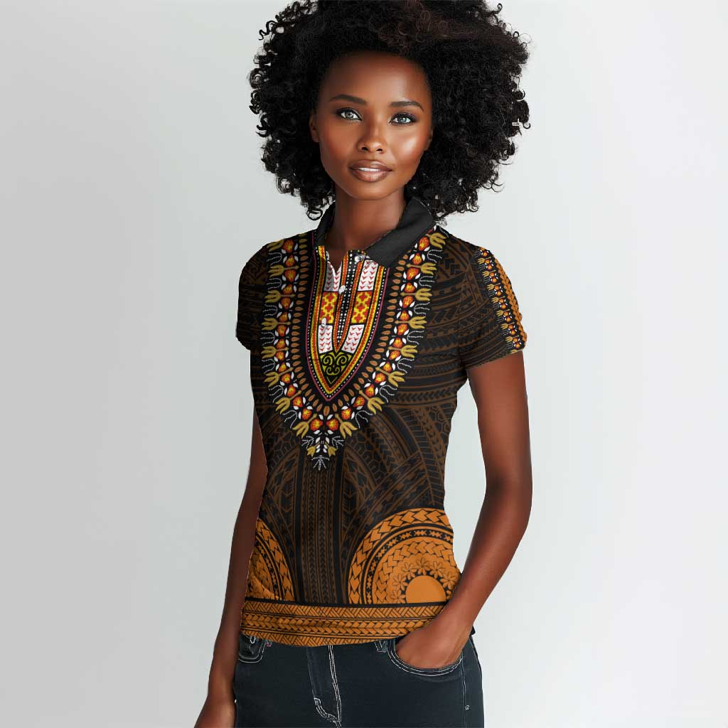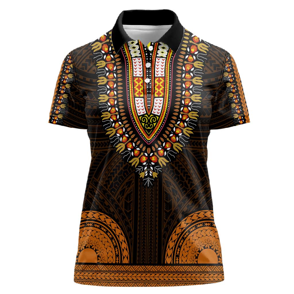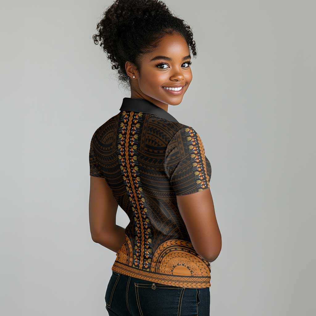 African Dashiki and Polynesian Pattern Women Polo Shirt Gold