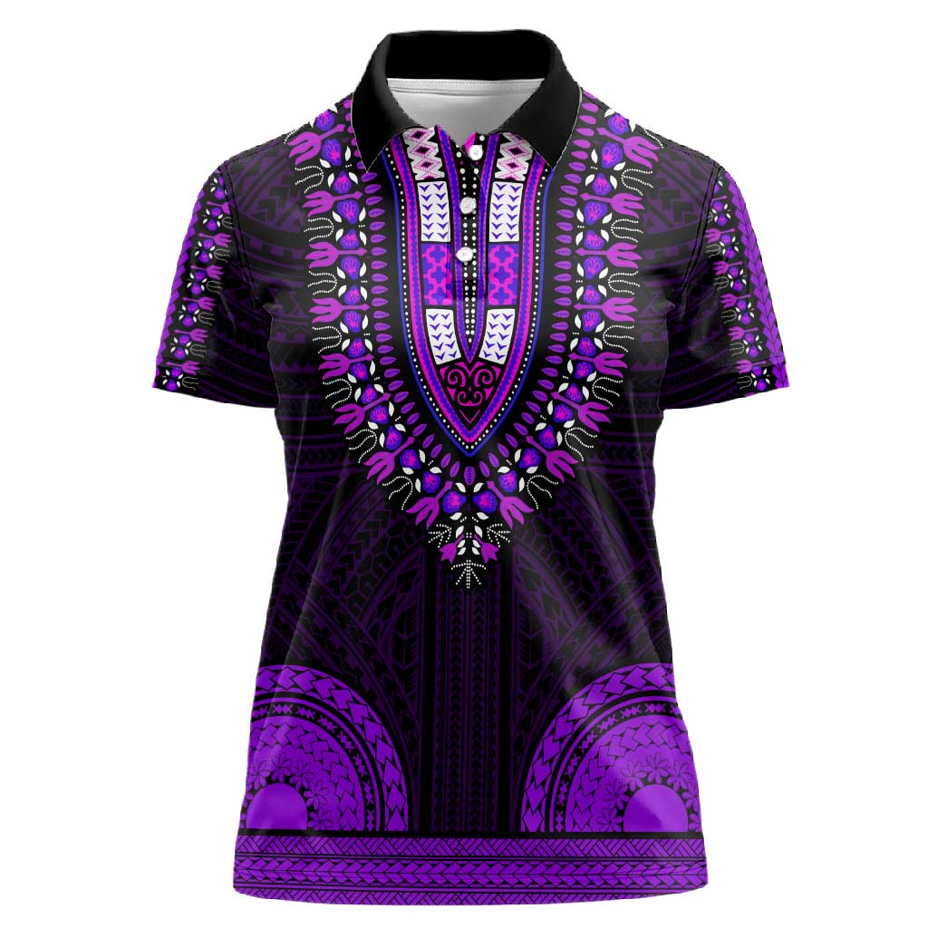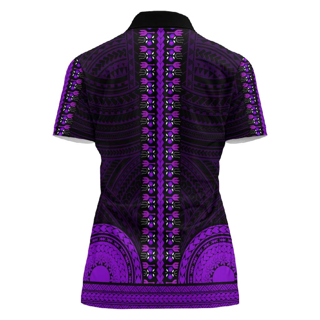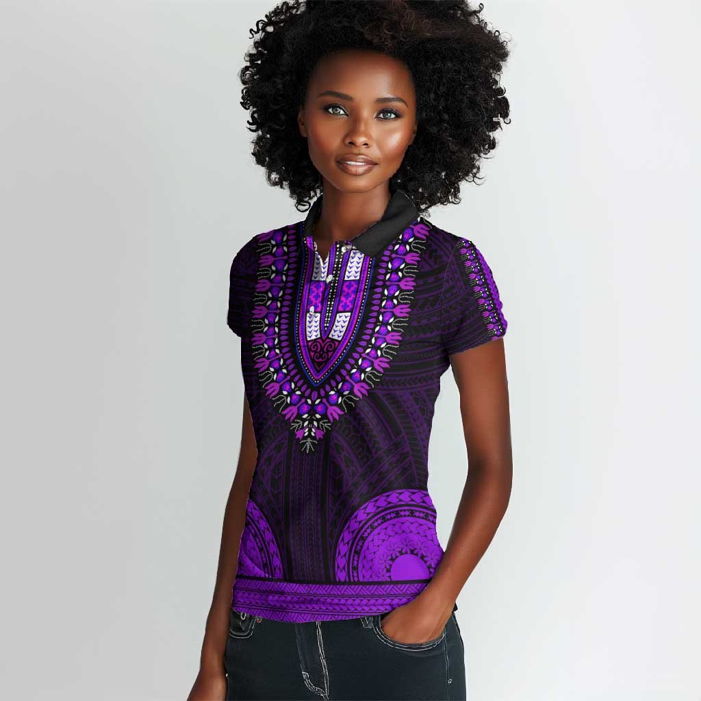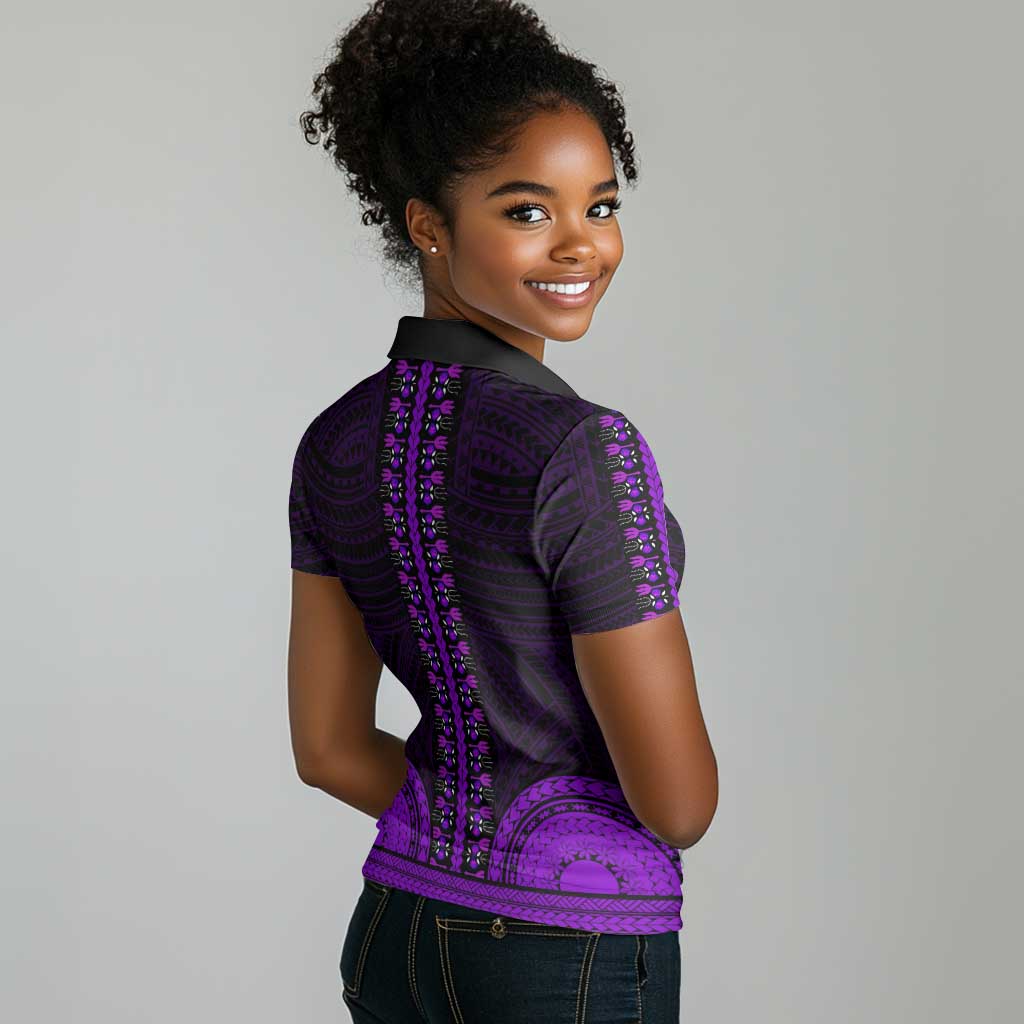 African Dashiki and Polynesian Pattern Women Polo Shirt Purple