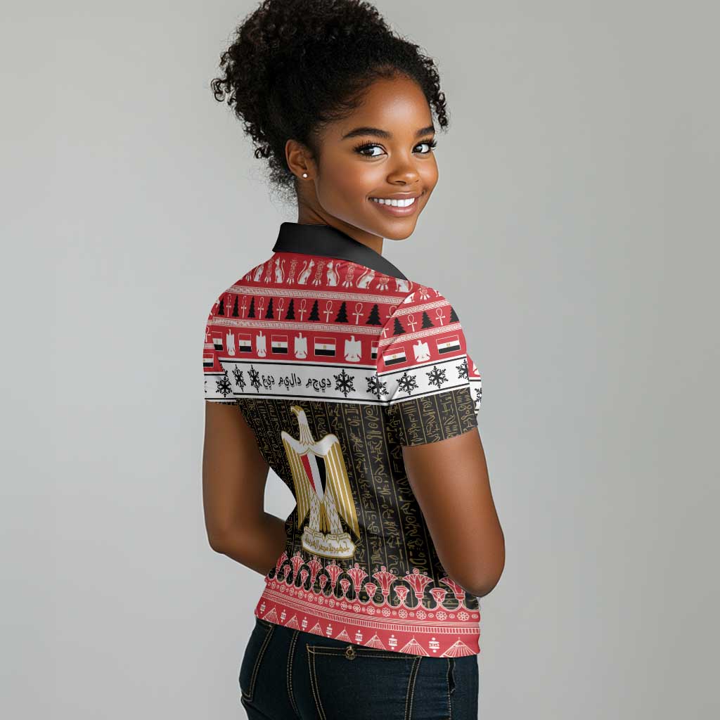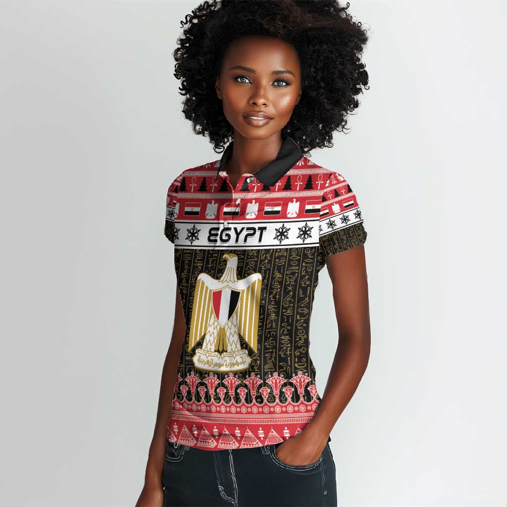 Afro Egypt Christmas Women Polo Shirt Coat Of Arms Mix Egyptian Pattern