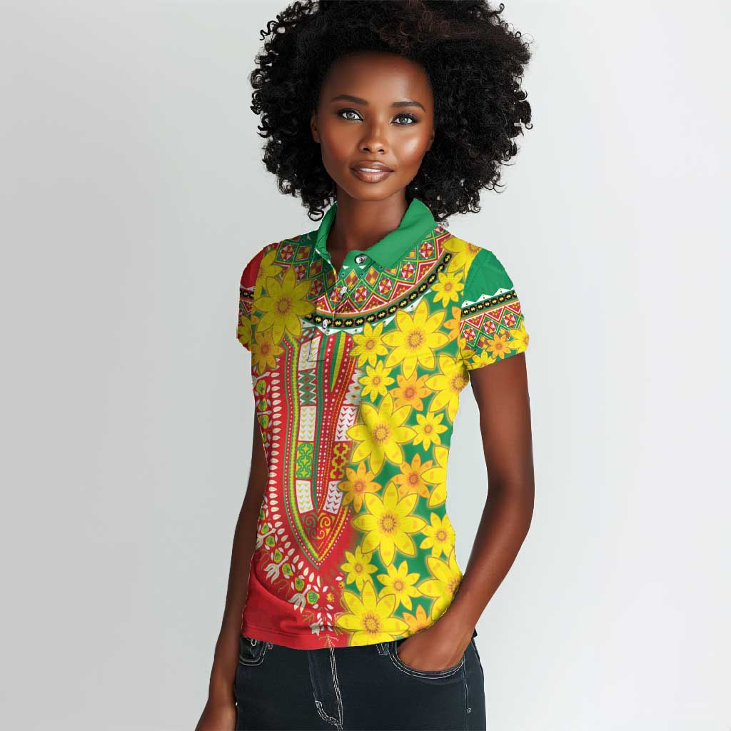 Afro Ethiopian New Year Women Polo Shirt Enkutatash Adey Abeba Flower Art