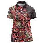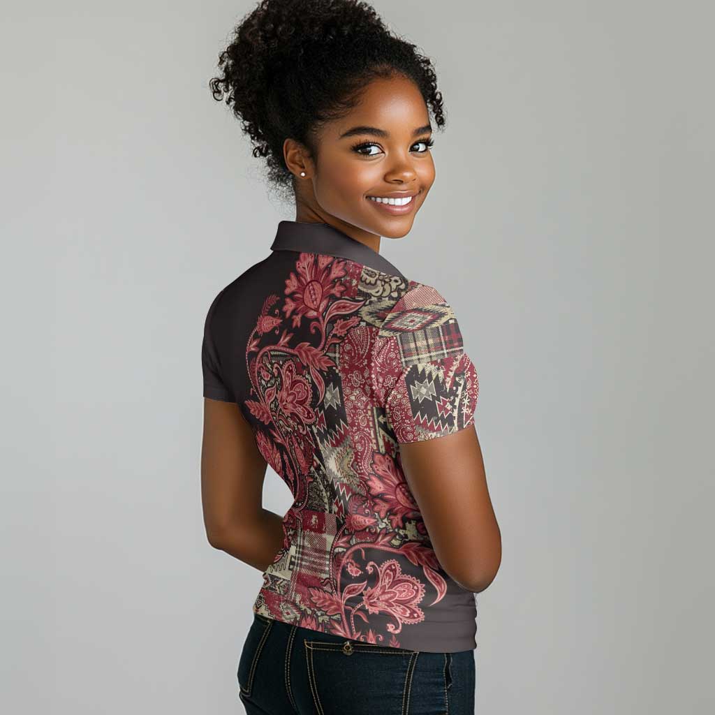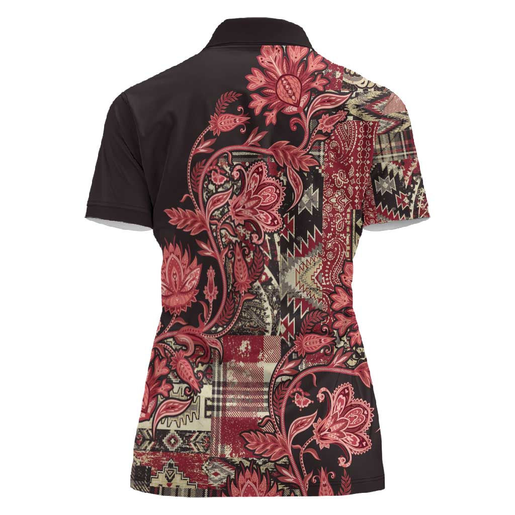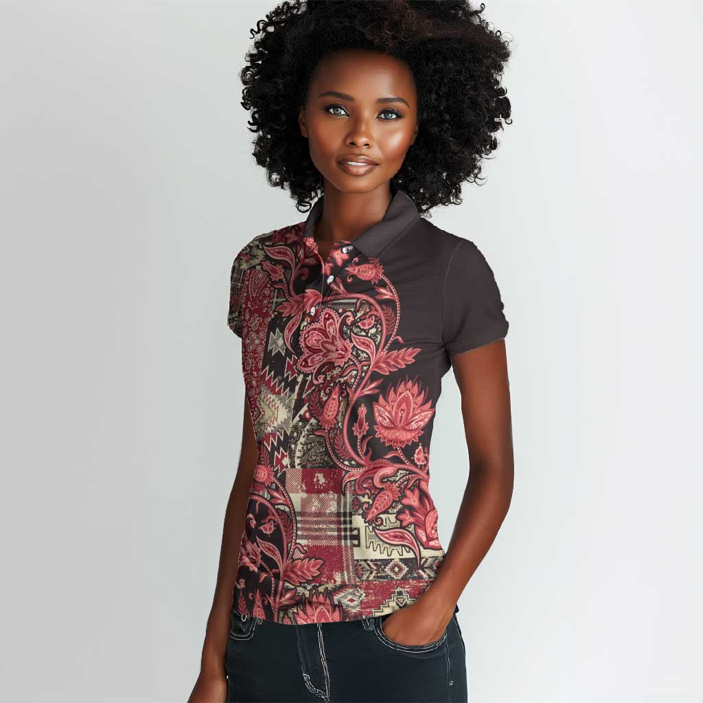 Afro Floral mix Maasai Shuka Women Polo Shirt Red Moitf