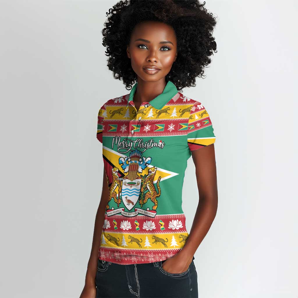 Afro Guyana Christmas Women Polo Shirt Mix Coat Of Arms