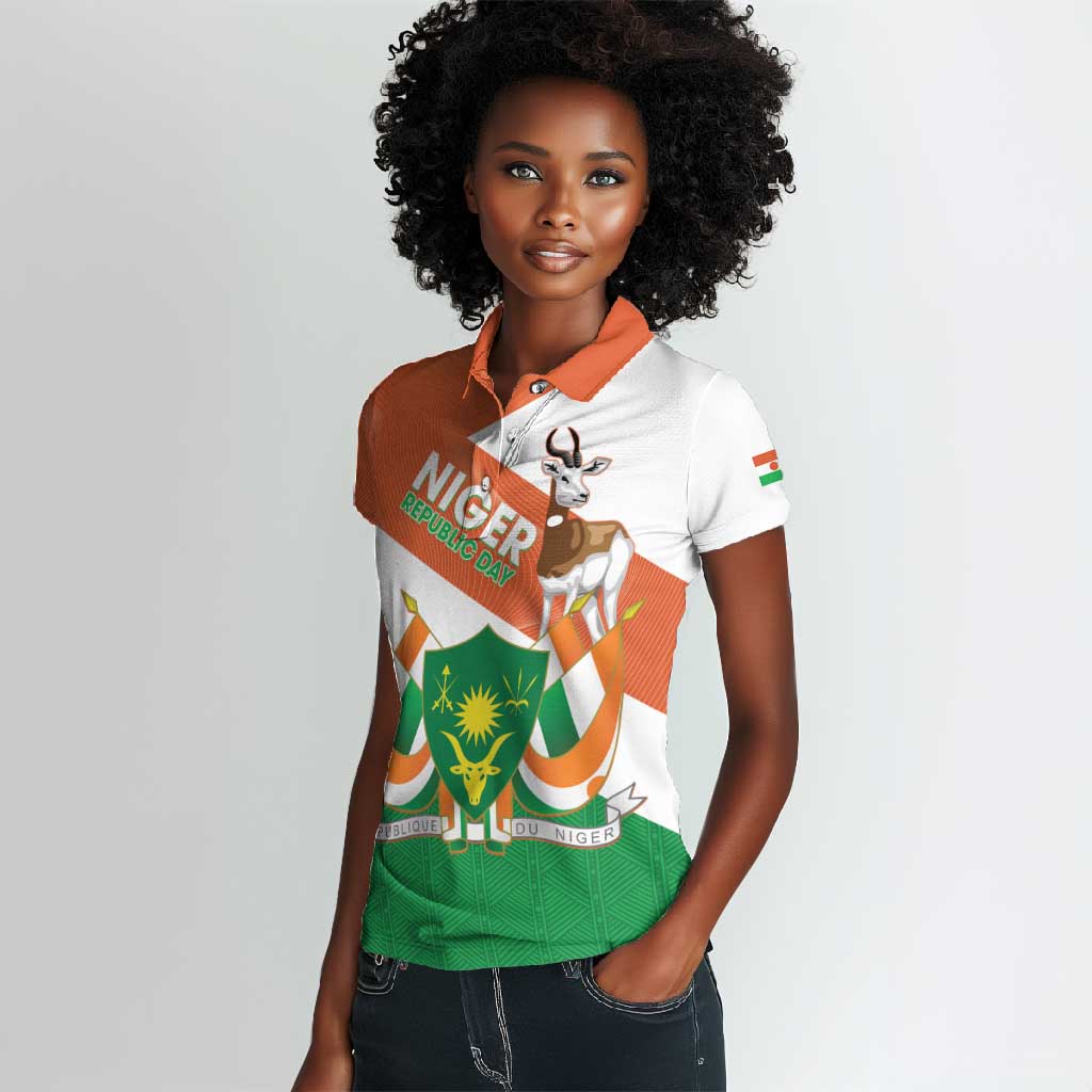 Afro Niger Women Polo Shirt Dama Gazelle African Pattern - Republic Day