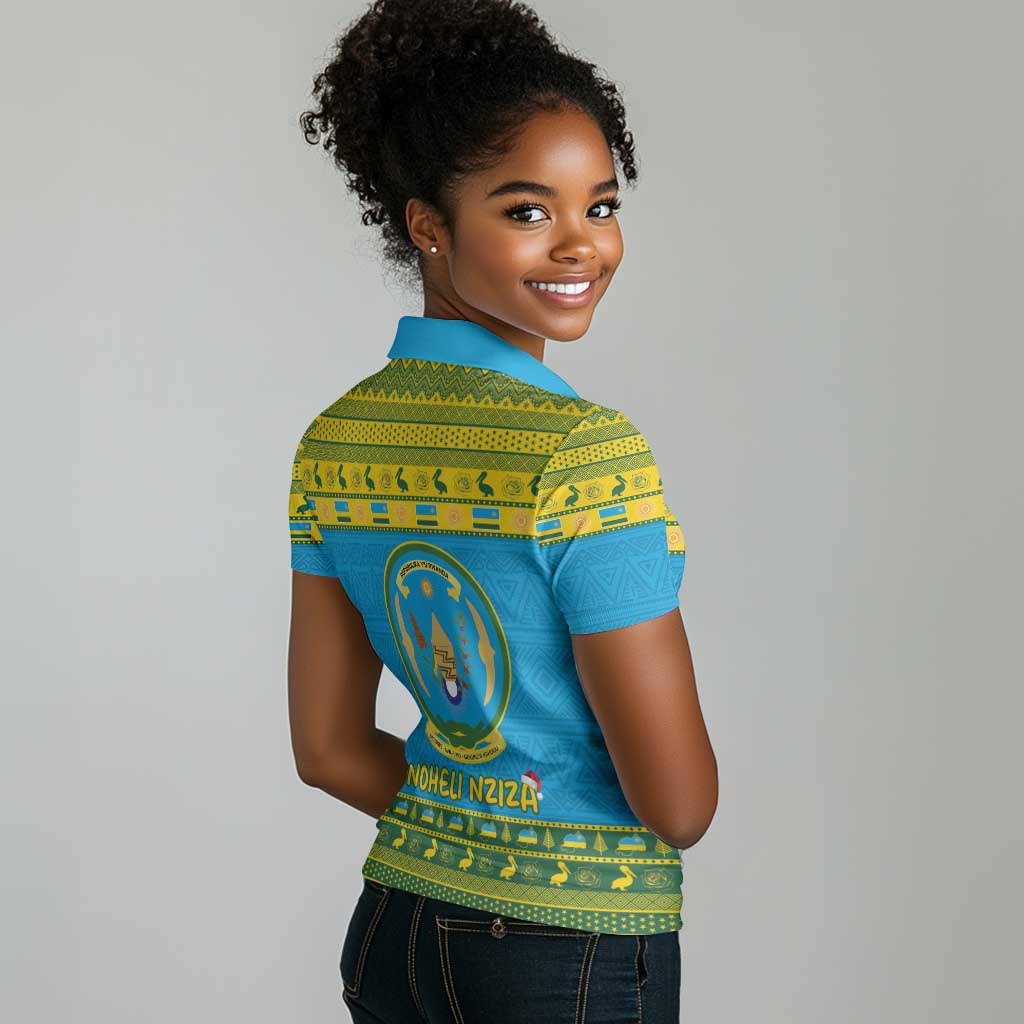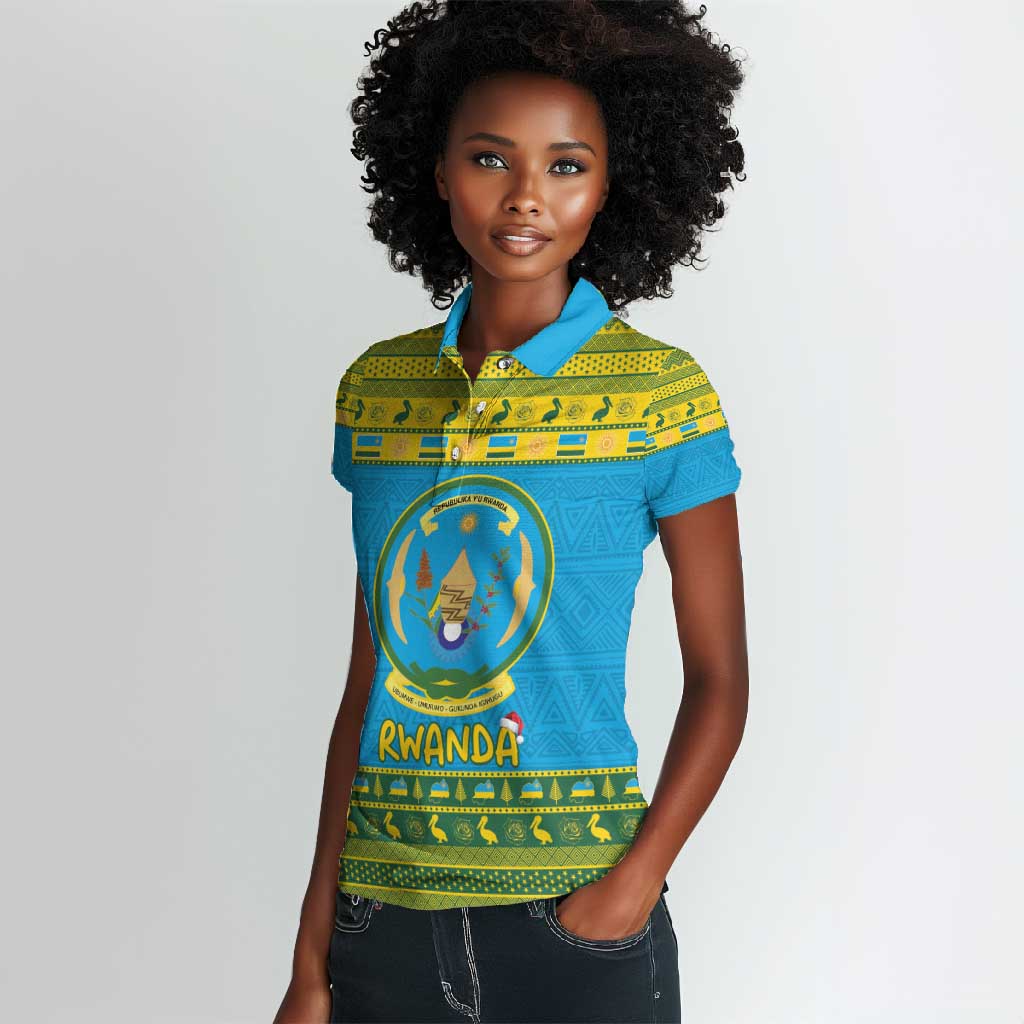Afro Rwanda Christmas Women Polo Shirt Noheli Nziza Coat Of Arms - African Pattern