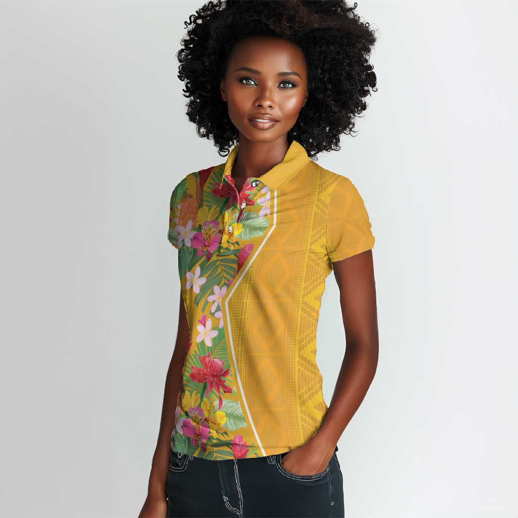 Afro Tropical Flowers Women Polo Shirt Yellow Version