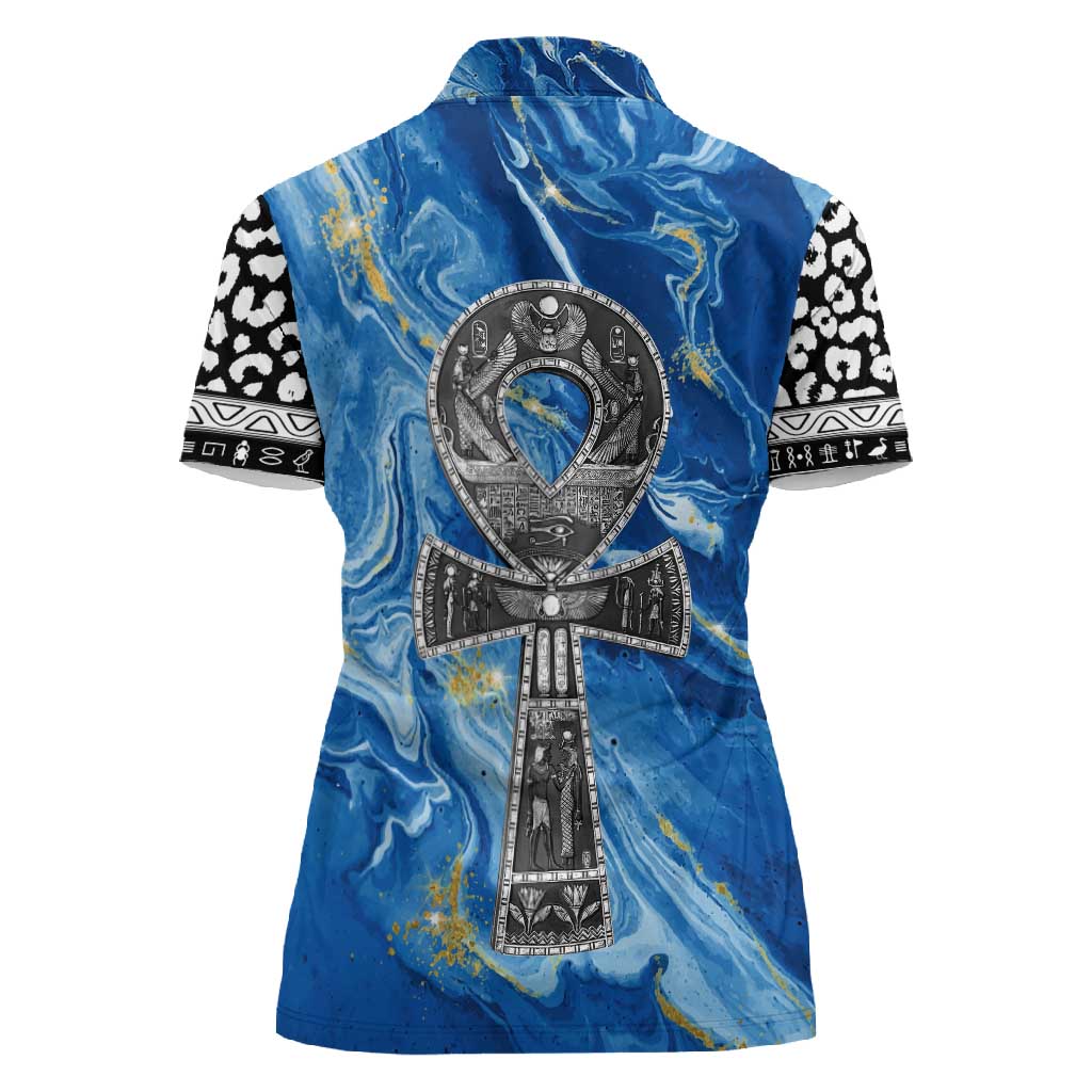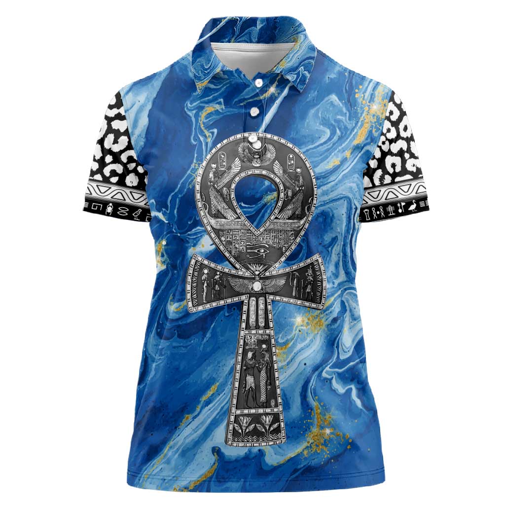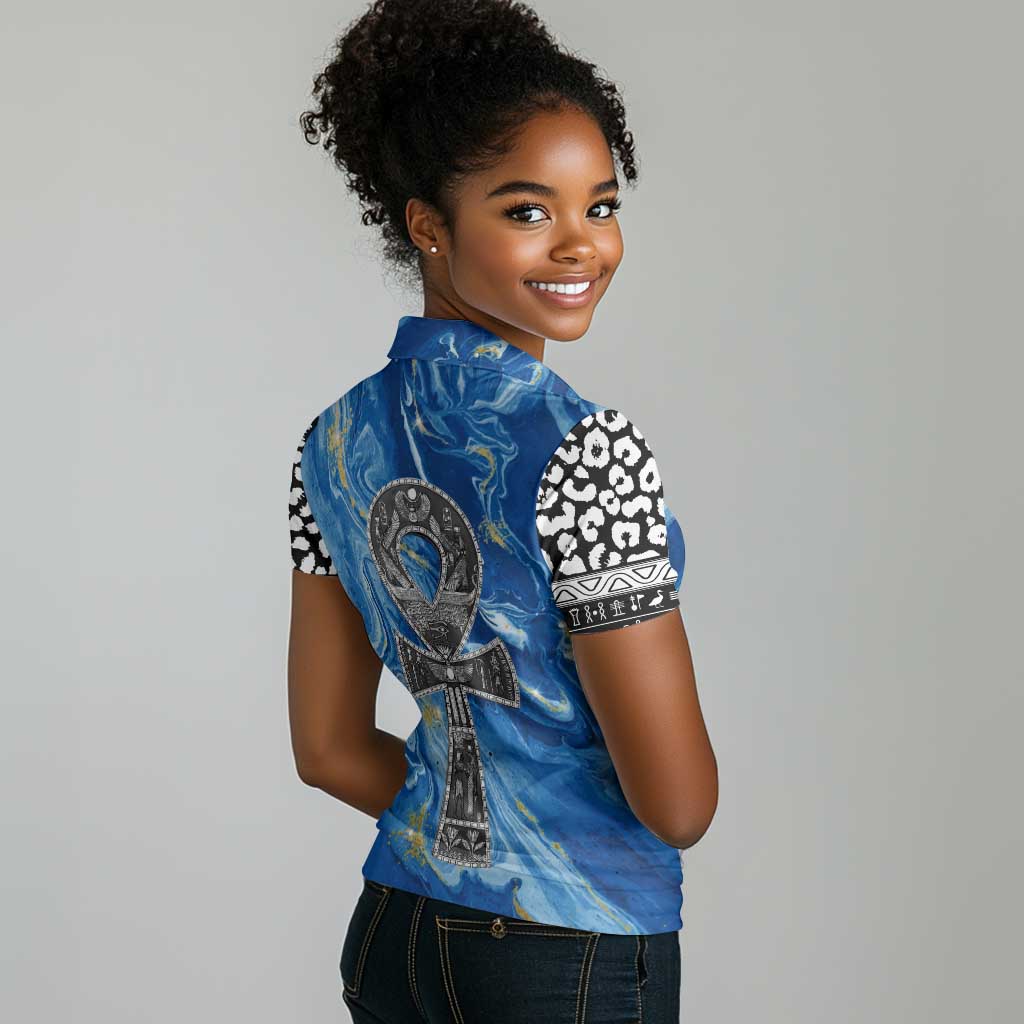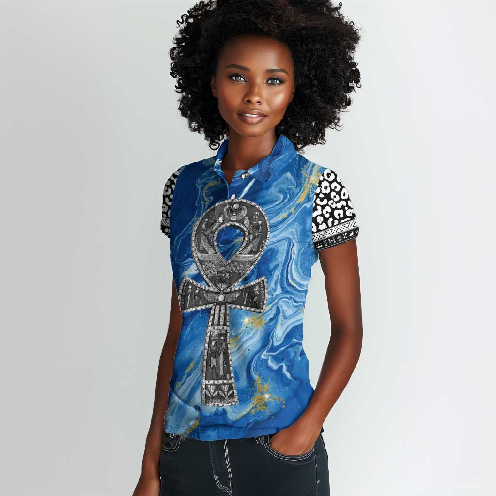 Ankh On Blue Women Polo Shirt Pan African DT02