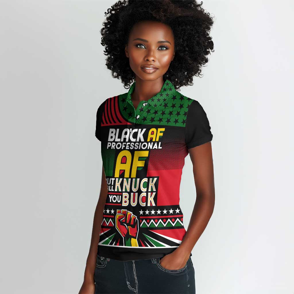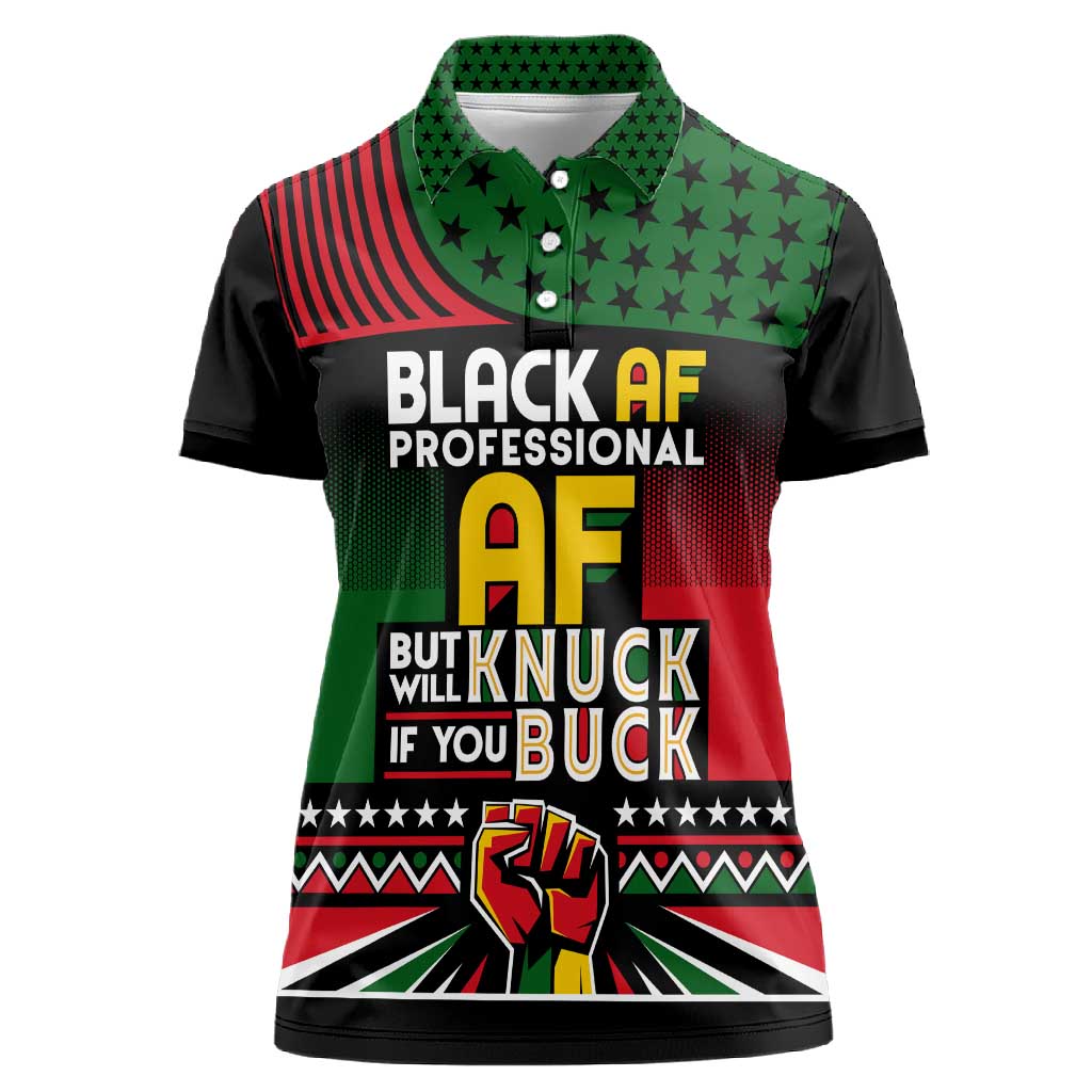 Black AF Professional AF But Will Knuck If You Women Polo Shirt African Pride