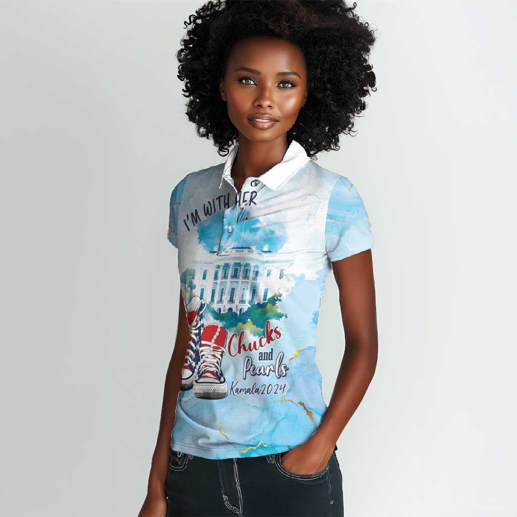 Chucks N Pearls 2024 Women Polo Shirt I'm With Her