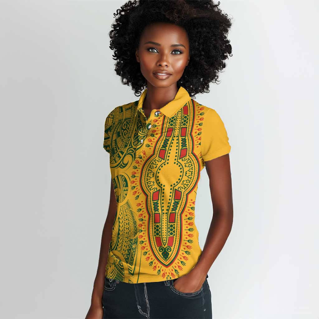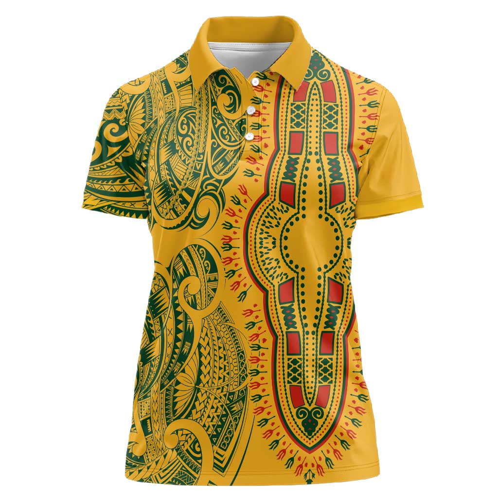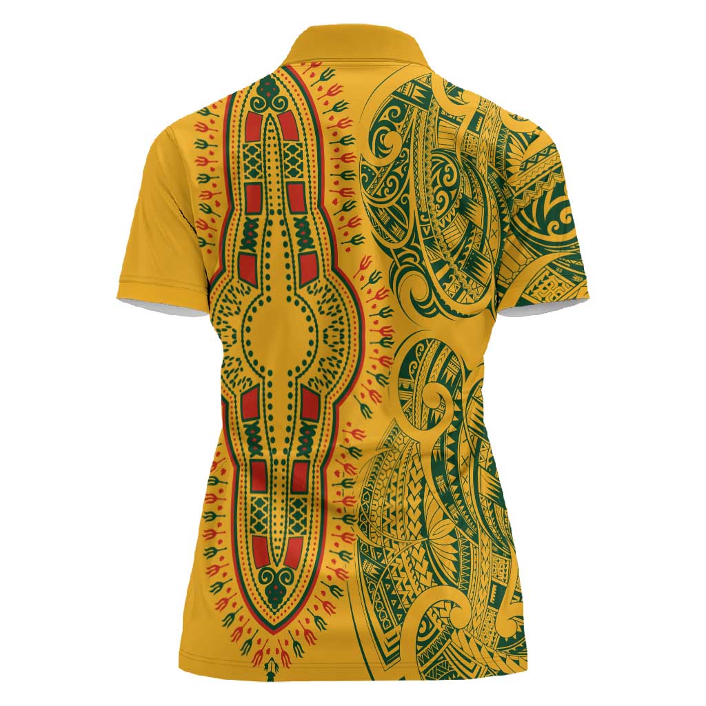 Dashiki and Polynesian Pattern Women Polo Shirt Afro Pacific Culture Gold Version