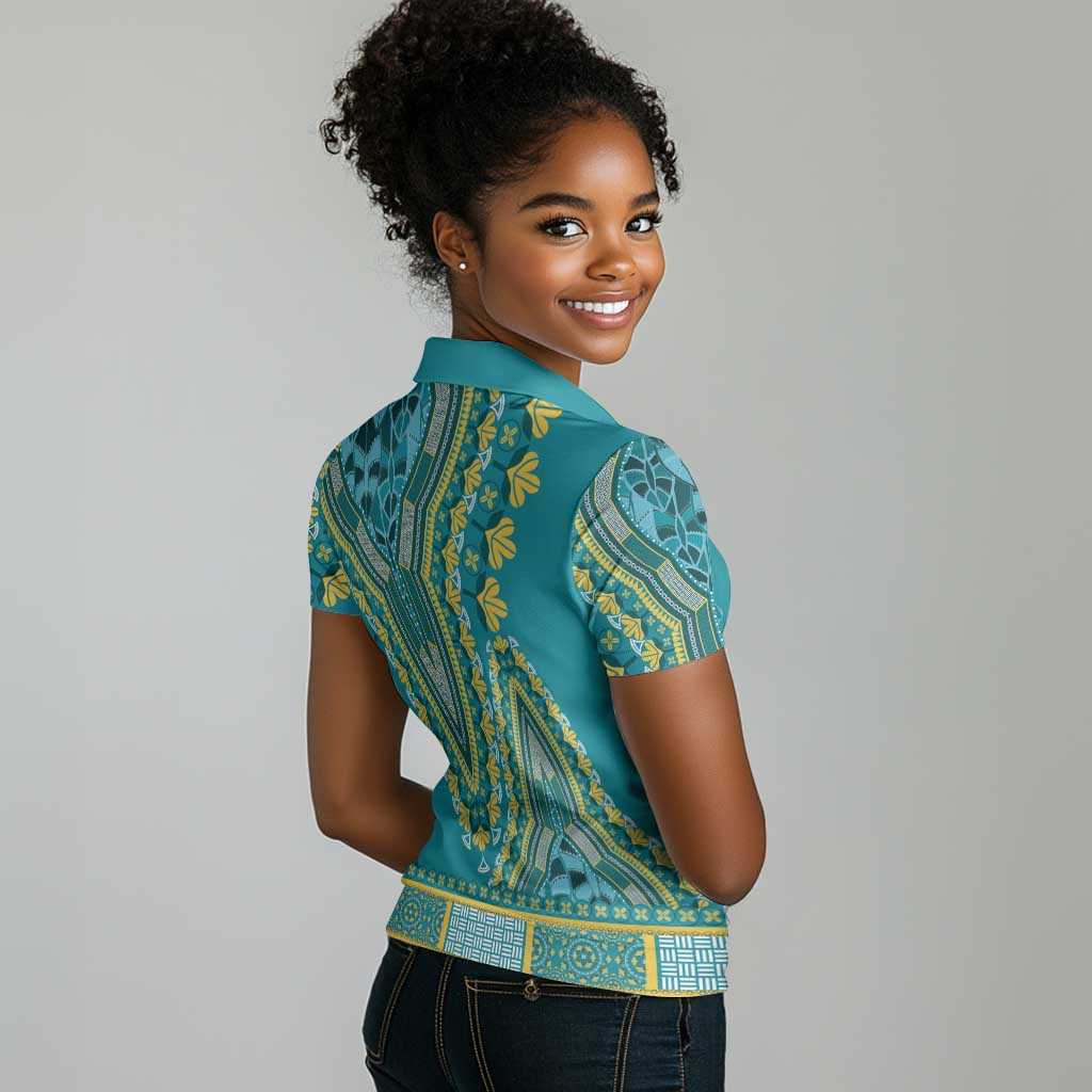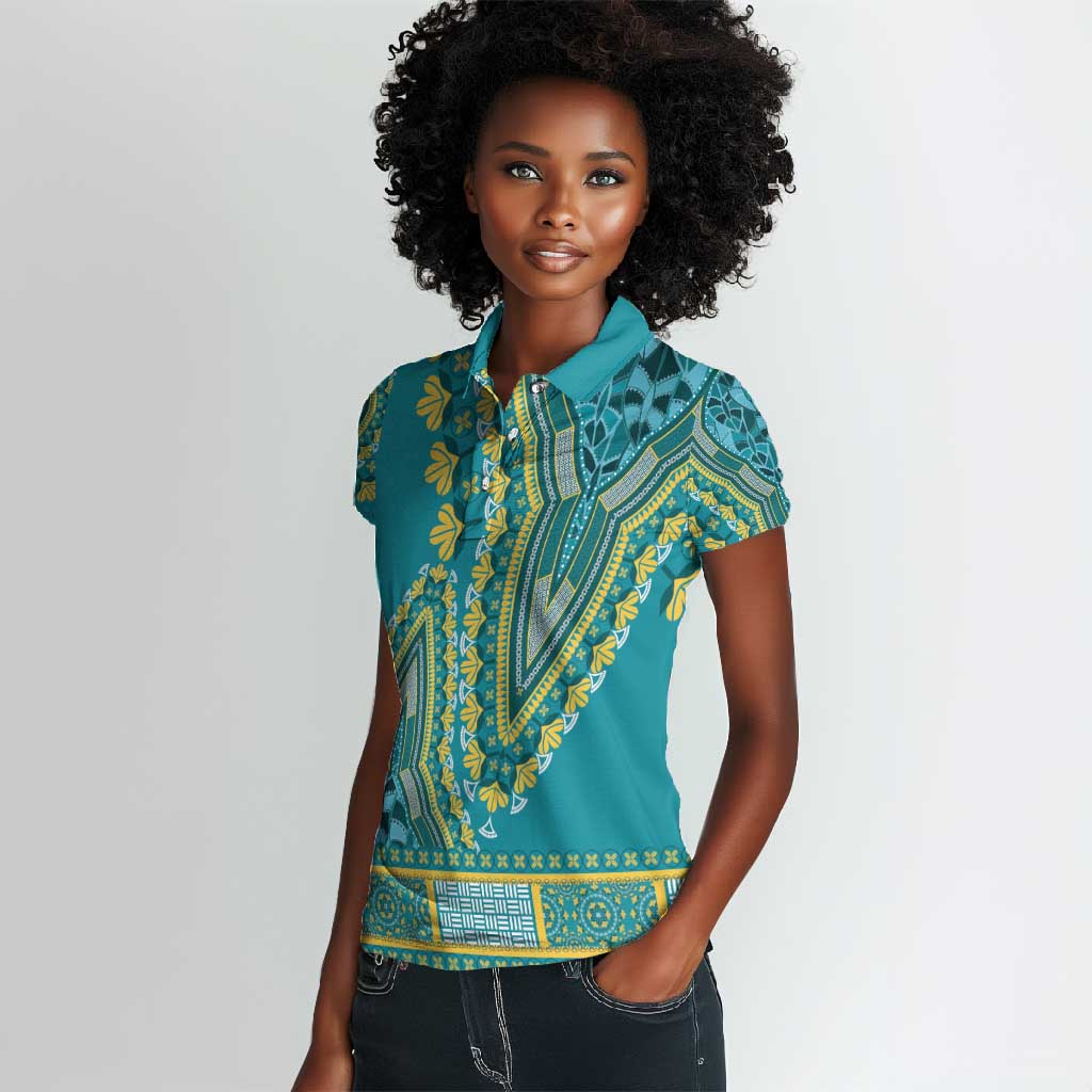 Dashiki Women Polo Shirt Luxury Afro - Teal