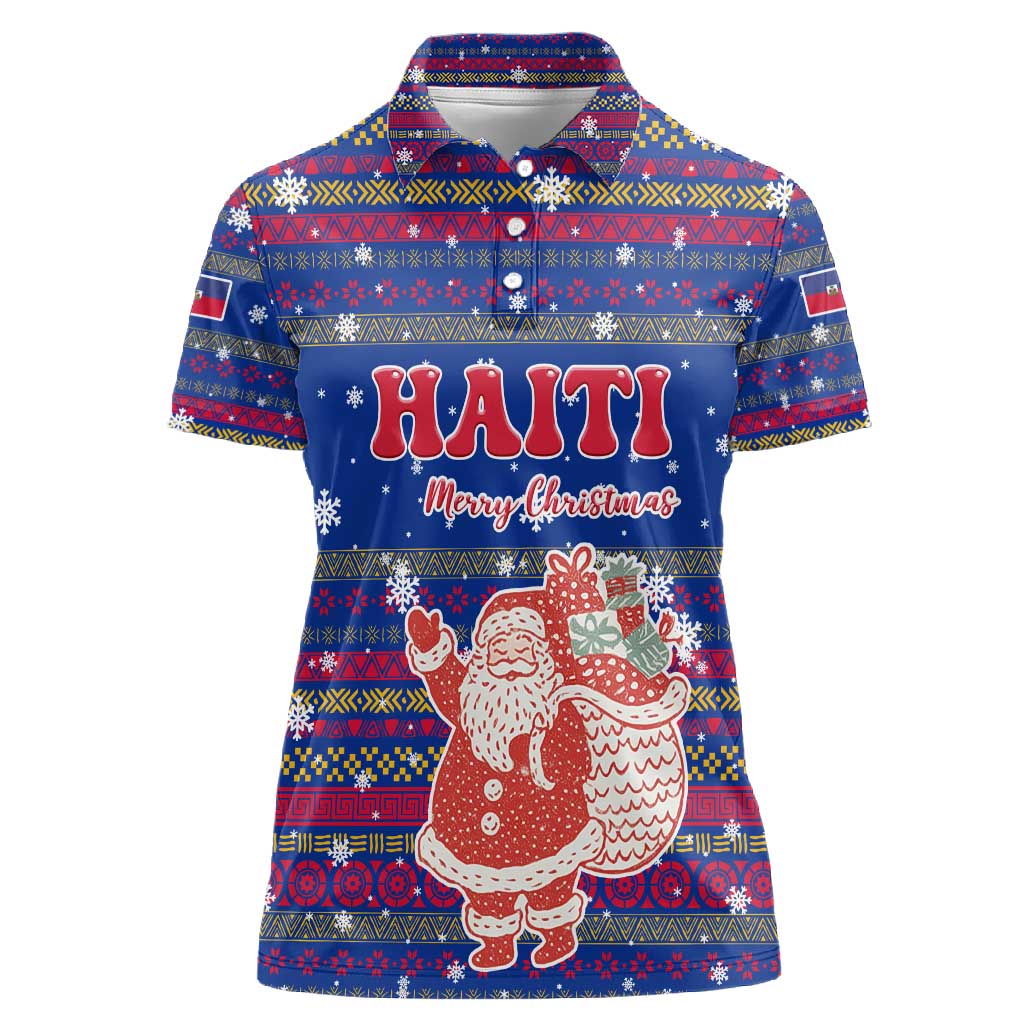 Haiti Christmas Women Polo Shirt Blue Red Xmas Santa Snowflake and Map