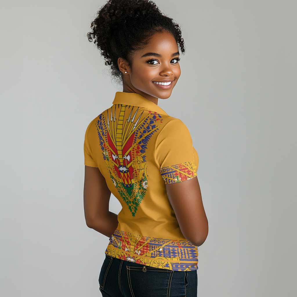 Haiti Flag Women Polo Shirt Traditional Dashiki Yellow Color