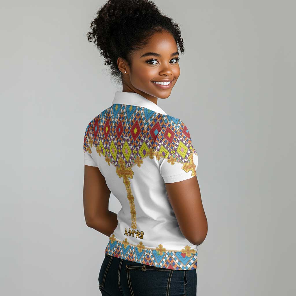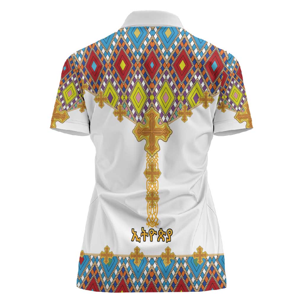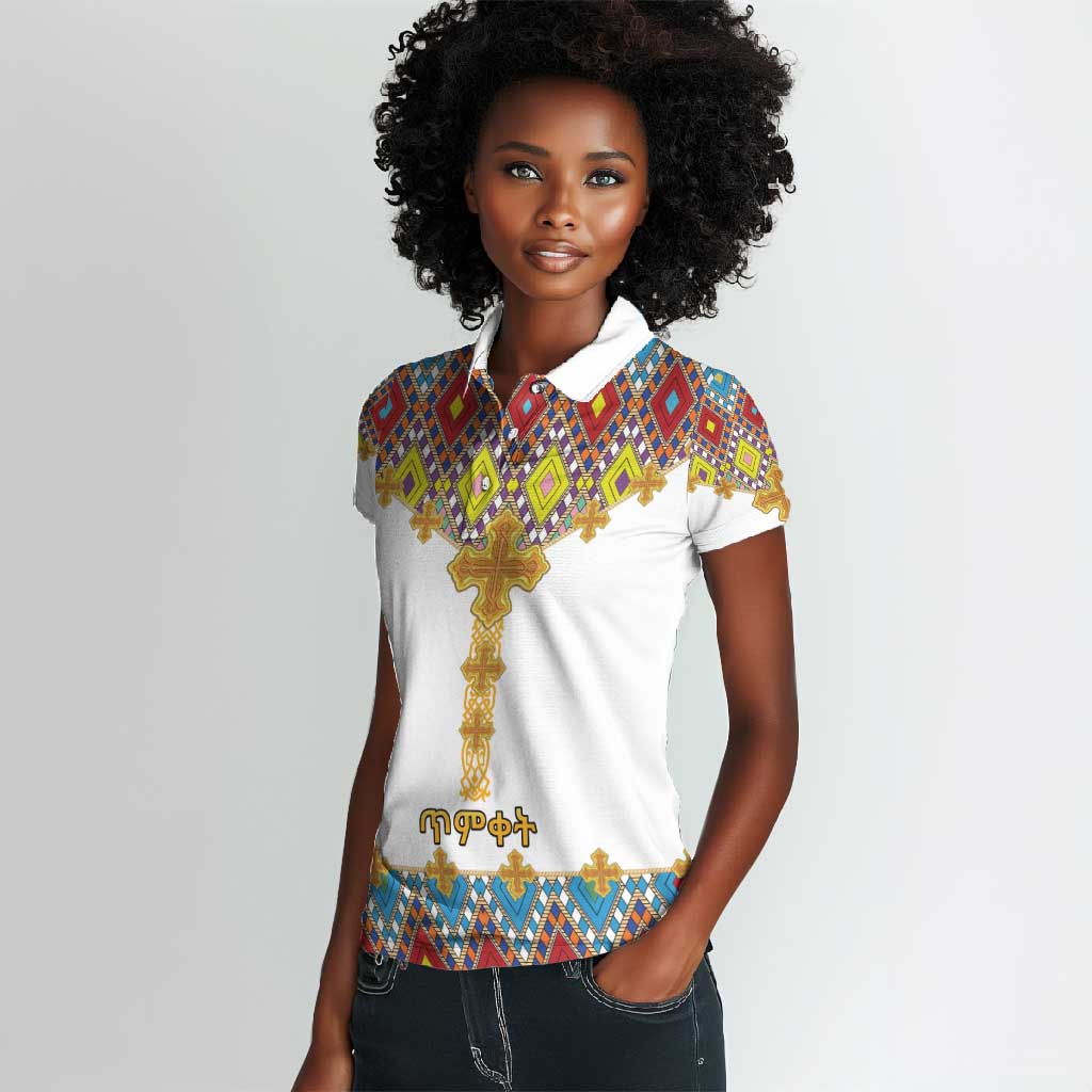 Happy Ethiopian Timkat Women Polo Shirt Cross Mix Tilet Pattern