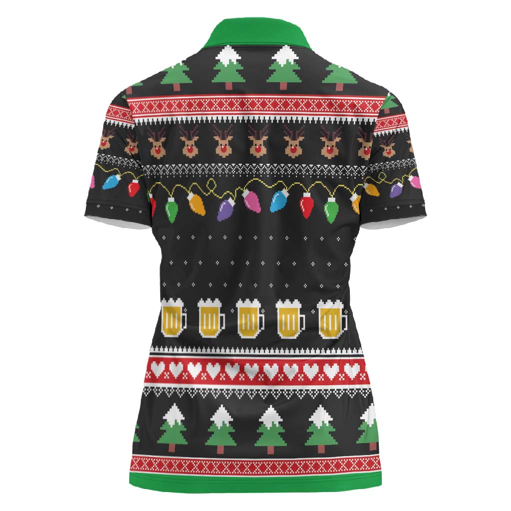 Ho Ho Ho Hold My Beer Santa Afro Women Polo Shirt Christmas Beer DT03