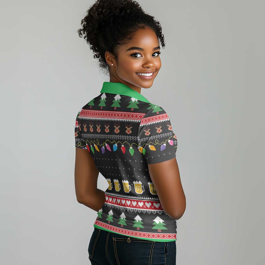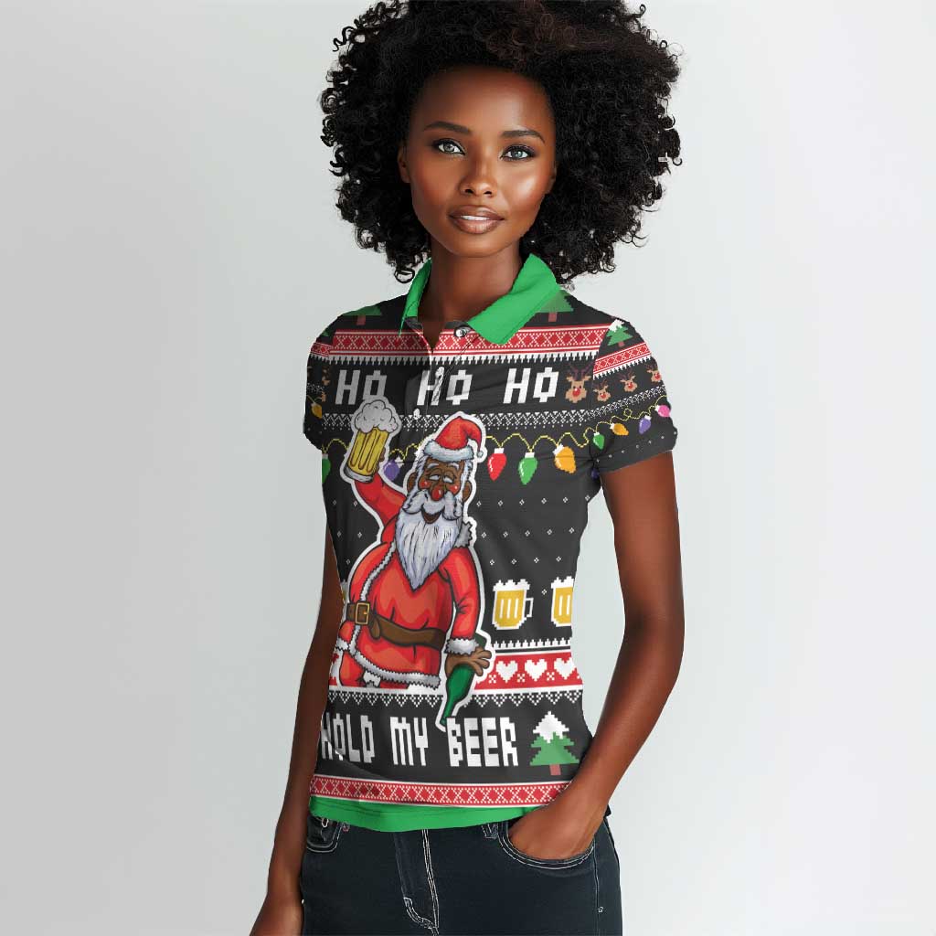 Ho Ho Ho Hold My Beer Santa Afro Women Polo Shirt Christmas Beer