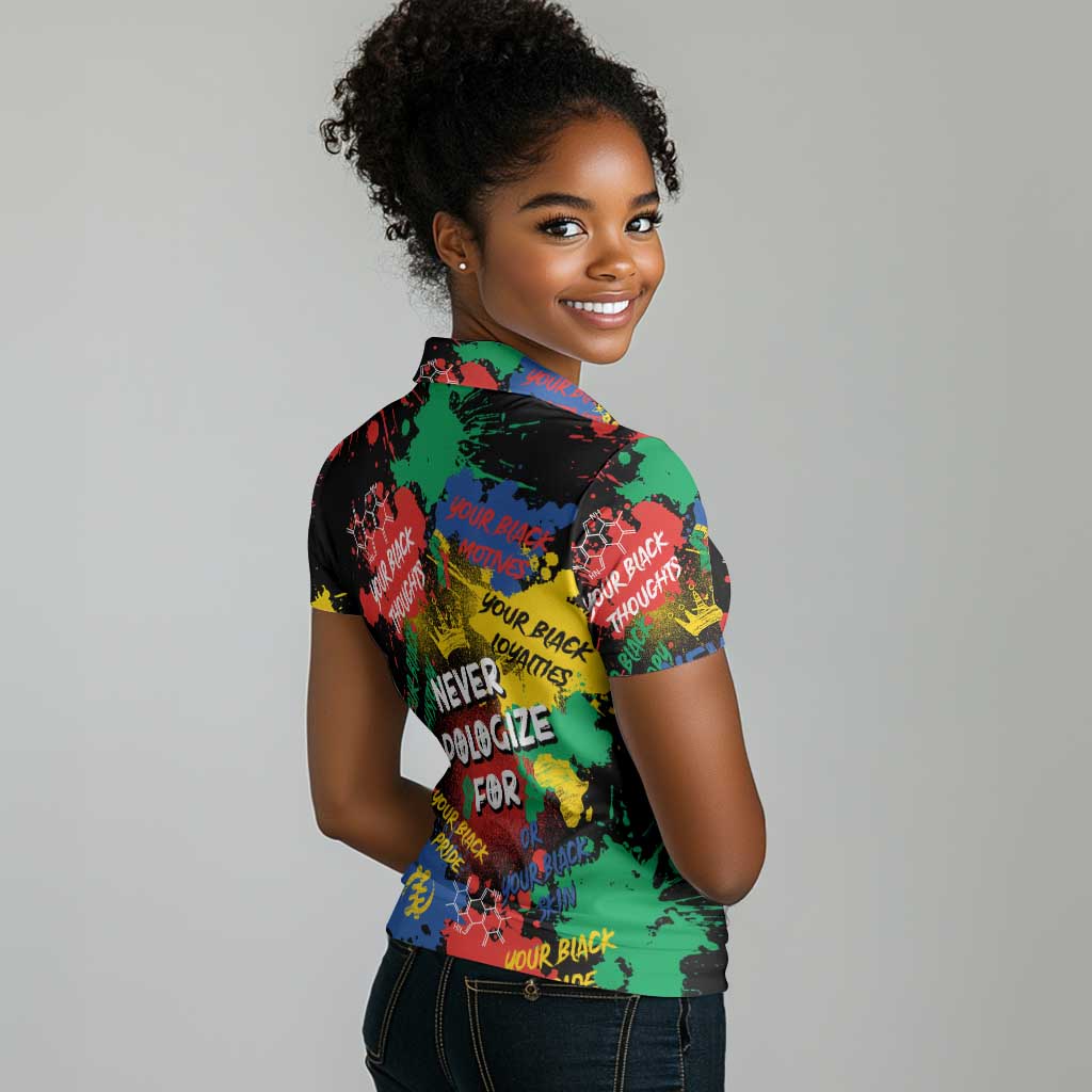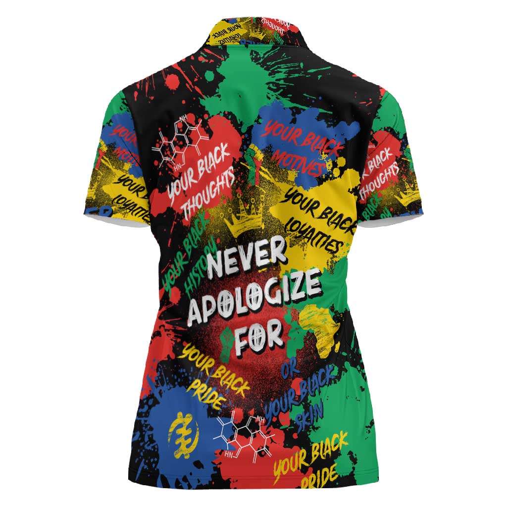 Never Apologize For Being Black Women Polo Shirt