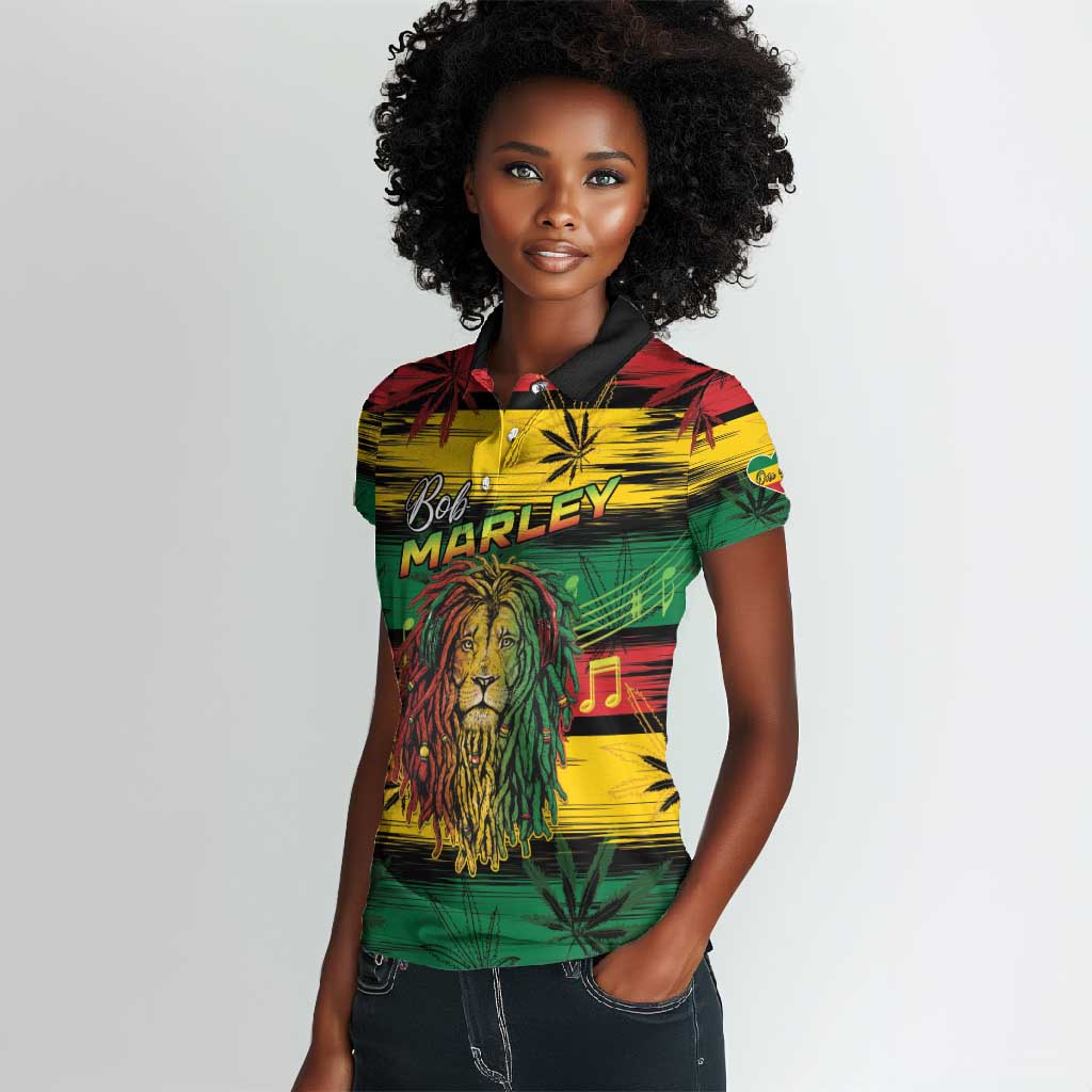 Personalised Rastafarian Lion Women Polo Shirt Cannabis Leaf Pattern