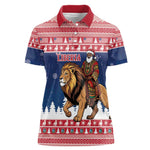 Personalized Afro Christmas in Liberia Women Polo Shirt Black Santa Riding Lion - Merry Christmas