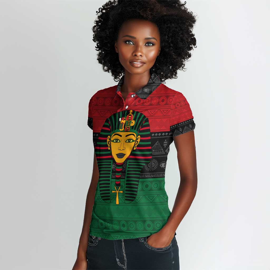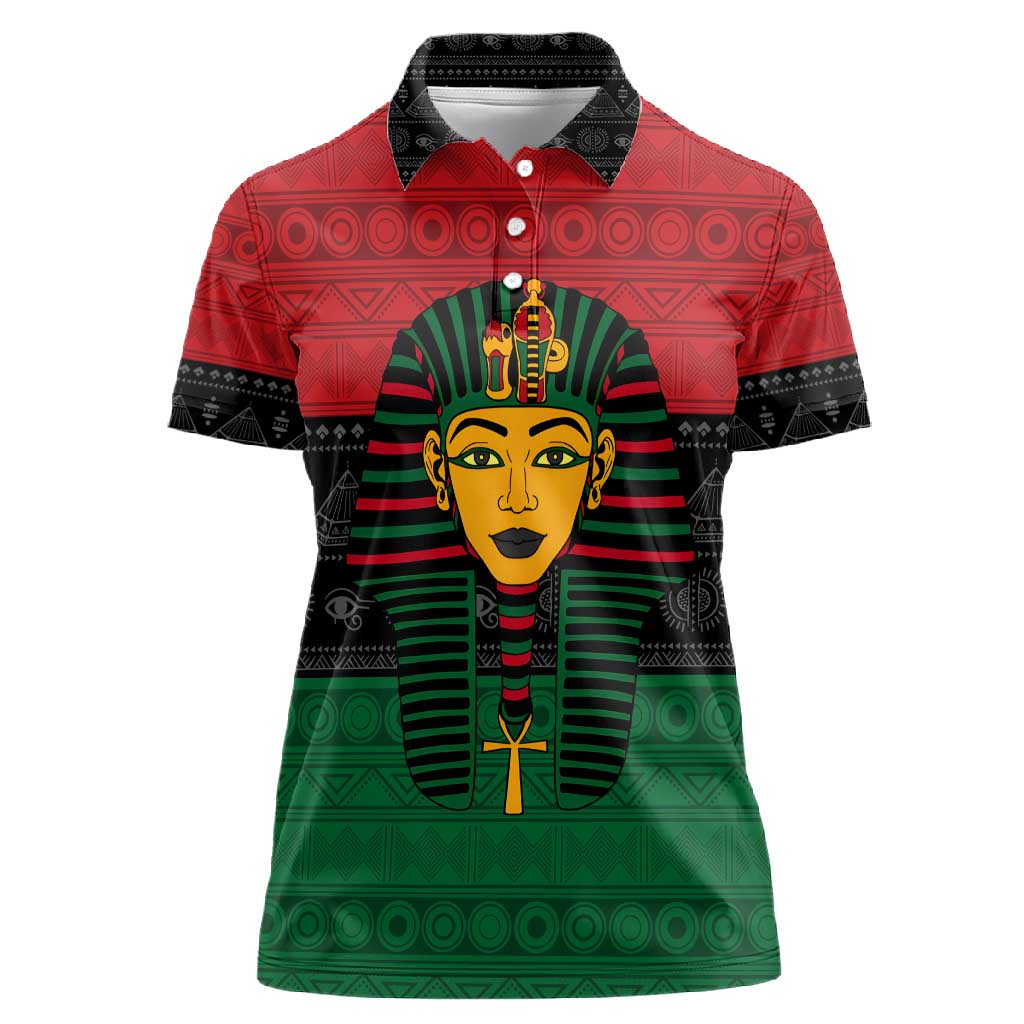 Personalized Ancient Egypt Women Polo Shirt - Pharaoh in Pan-African Colors