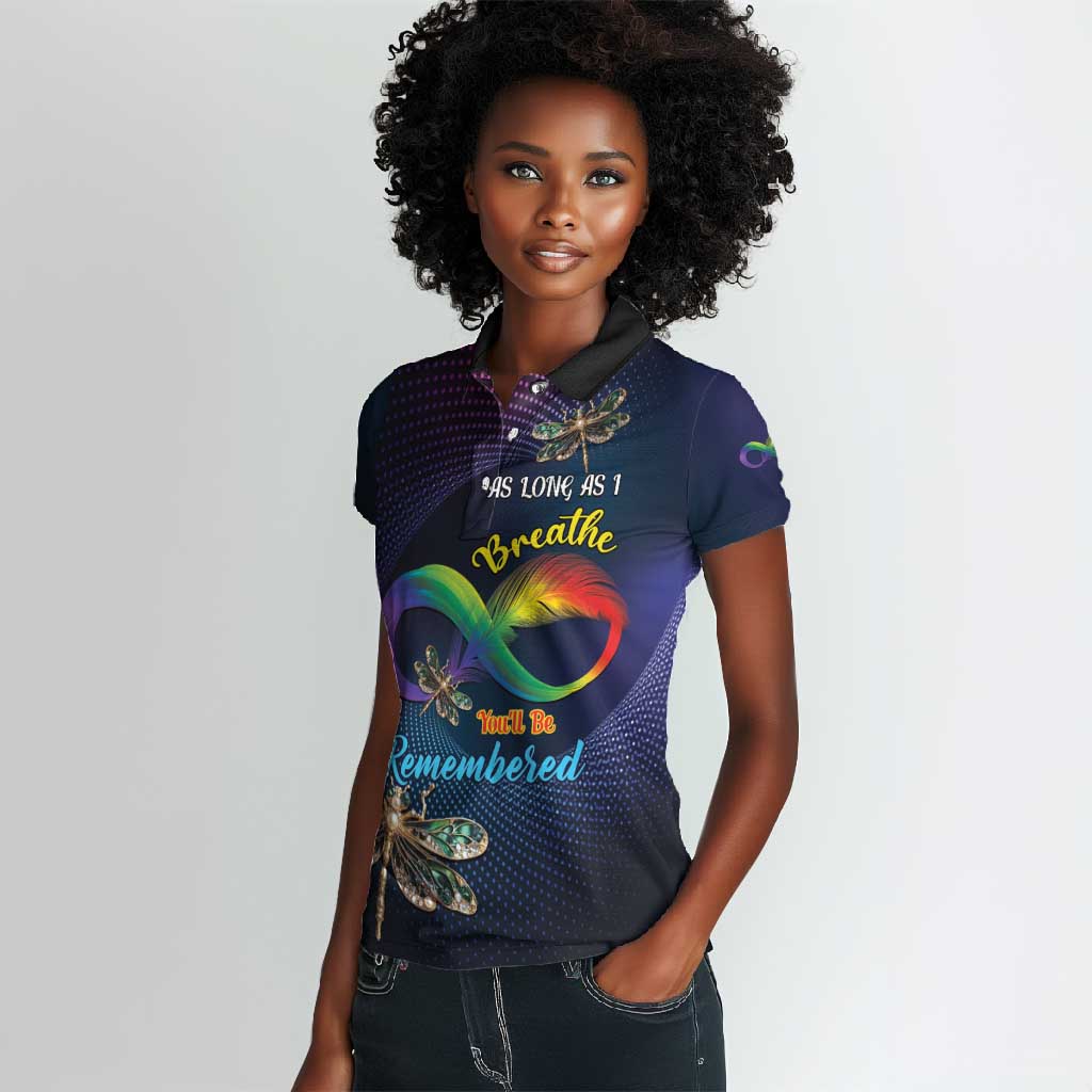 Personalized As Long As I Breathe You'll Be Remembered Women Polo Shirt Luxury Dragonfly - Feather Infinity