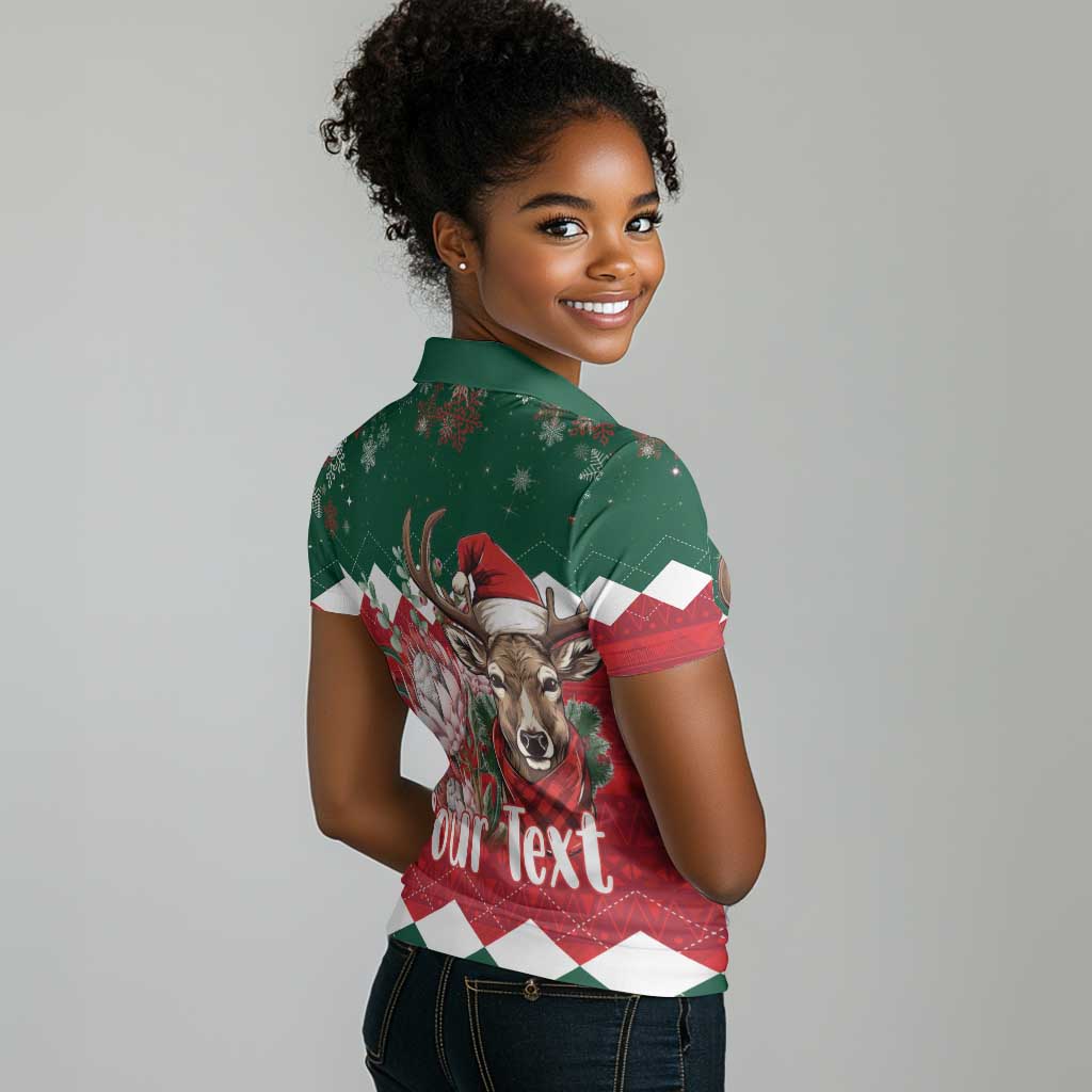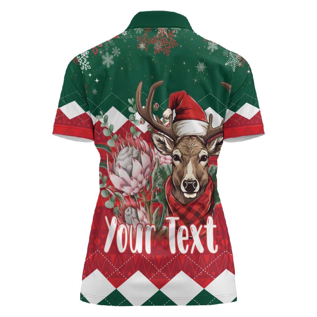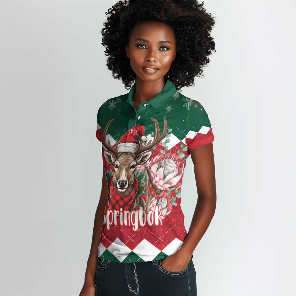Personalized South Africa Merry Christmas Women Polo Shirt Springbok With King Protea