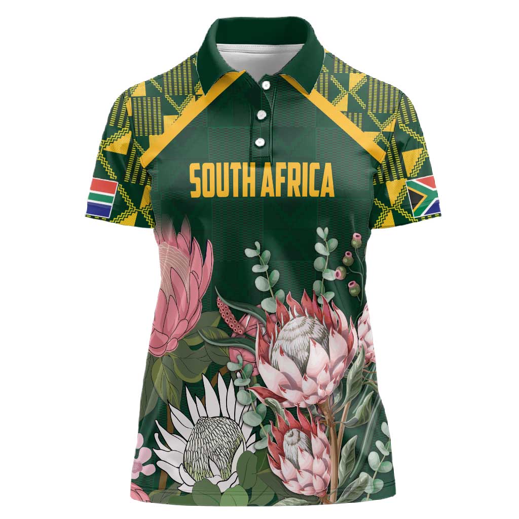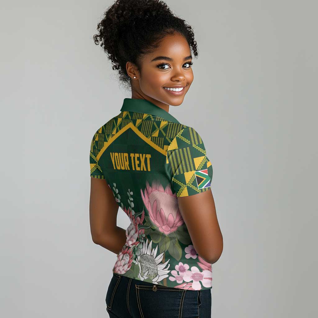 Personalized South Africa With Afro King Protea Women Polo Shirt Kente Patterns