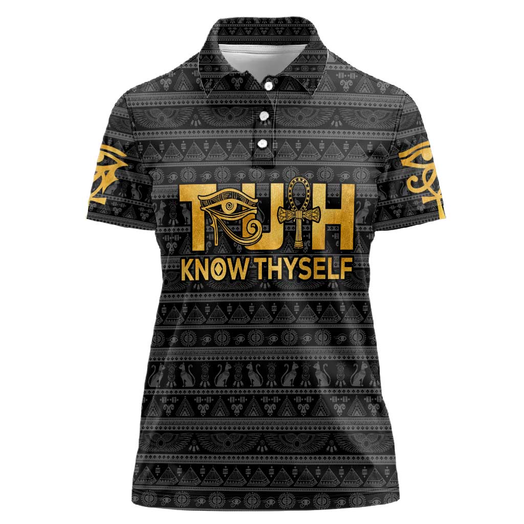 Personalized Truth Know Thyself Women Polo Shirt Eye of Horus and Ankh