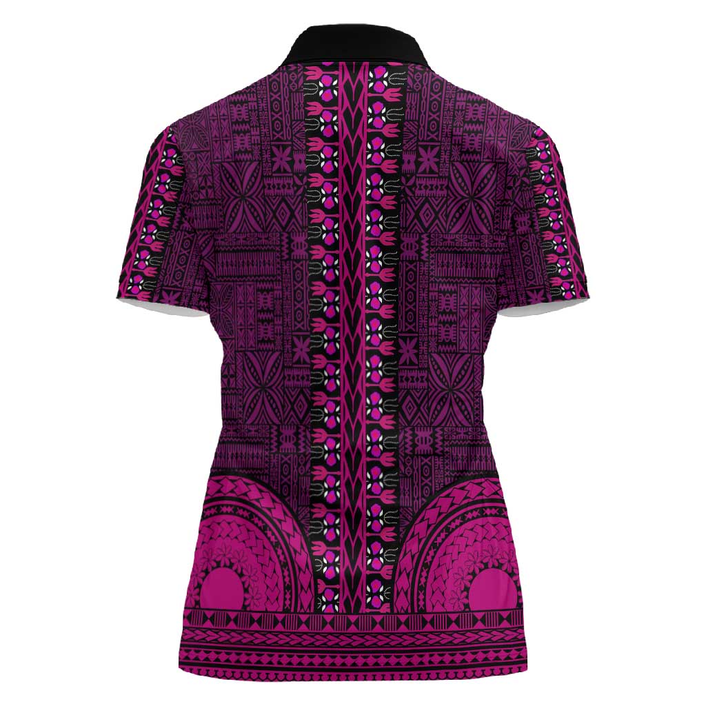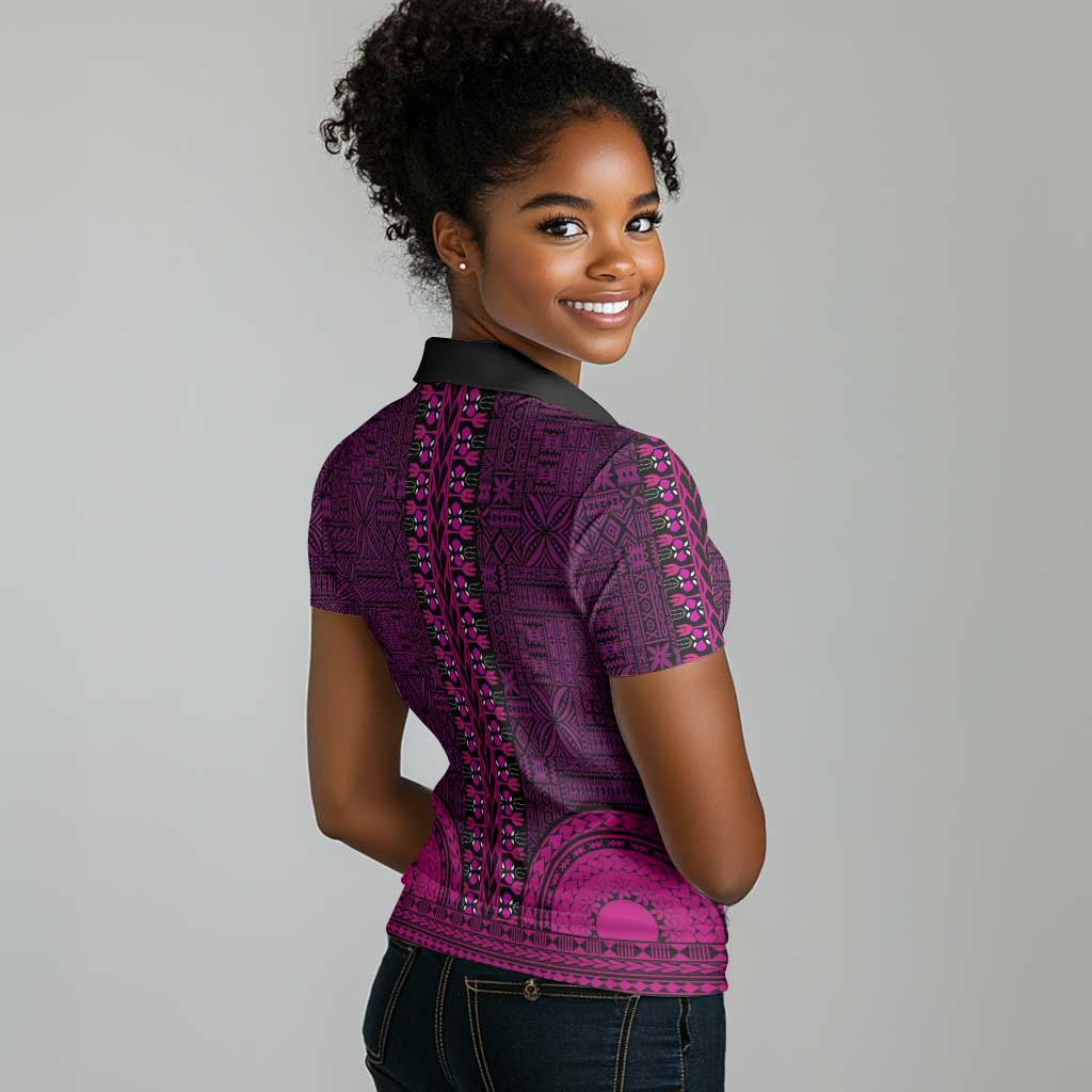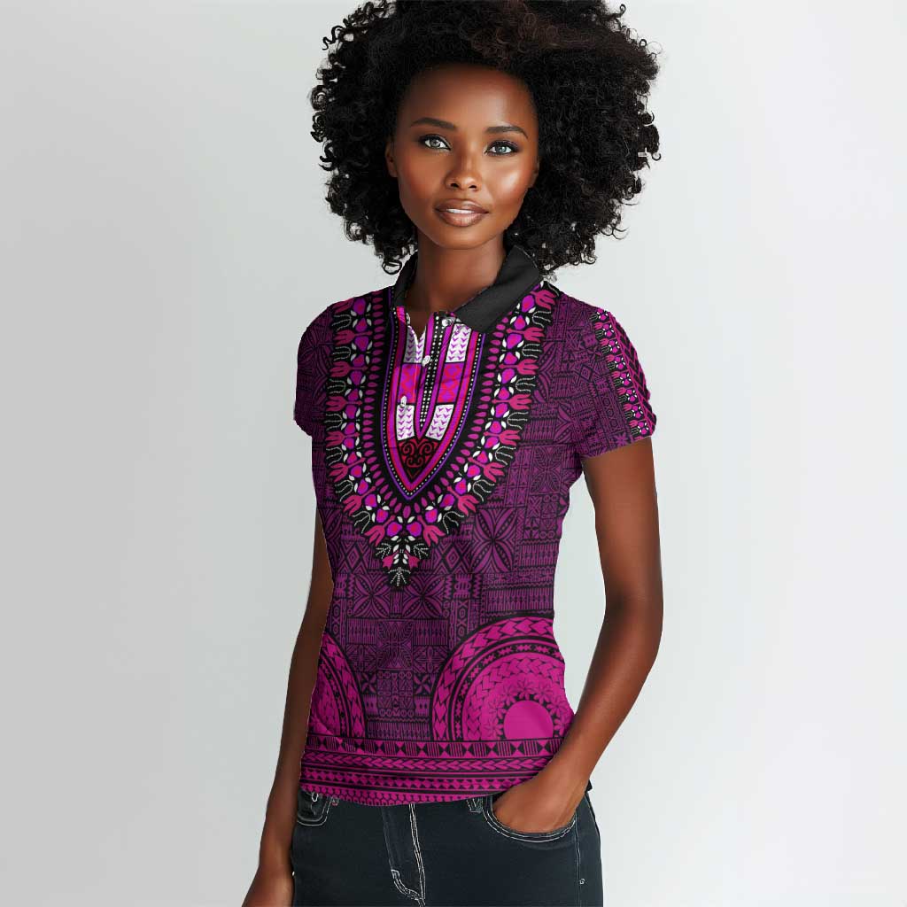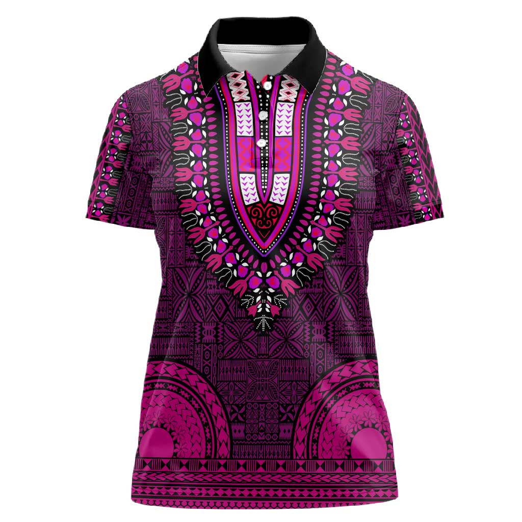 Pink Dashiki and Tapa Pattern Women Polo Shirt Africa-Polynesia Together Culture