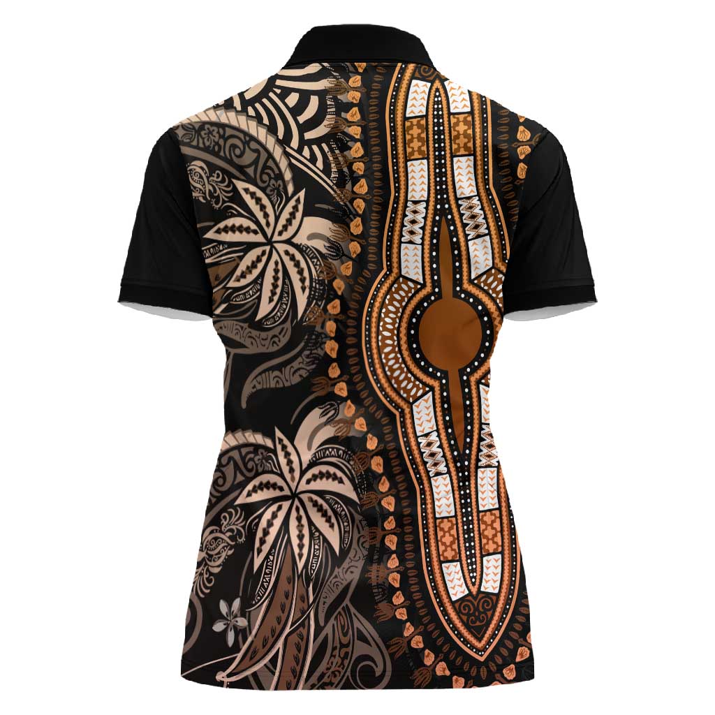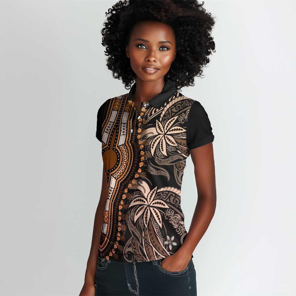 Polynesia Mixed African Dashiki Women Polo Shirt Afro-pacific Culture - Gold