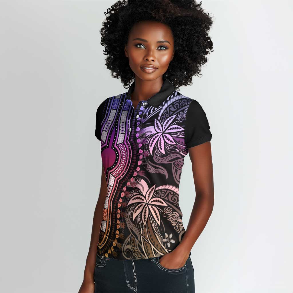 Polynesia Mixed African Dashiki Women Polo Shirt Afro-pacific Culture - Pastel